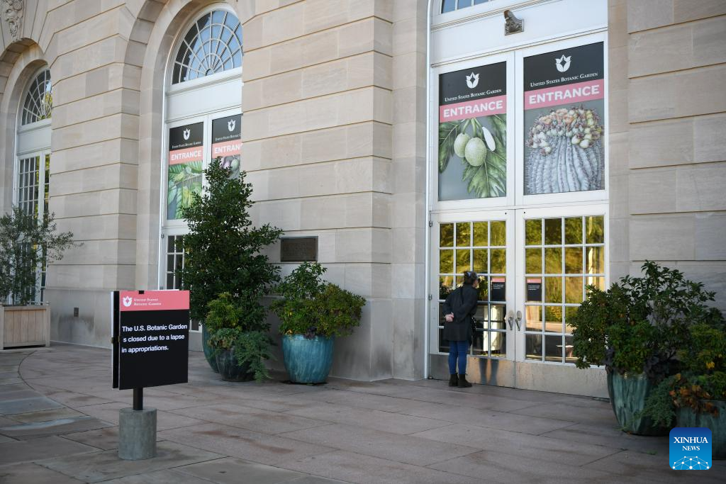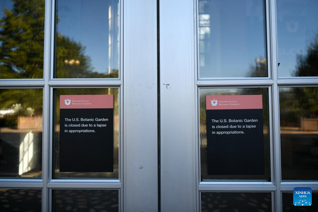 Notices of closure are posted on the entrance of the United States Botanic Garden in Washington, D.C., the United States, Oct. 5, 2025. As the U.S. federal government entered a shutdown -- the first time in nearly seven years -- the confrontation between President Donald Trump's administration and the Democratic Party has further escalated.