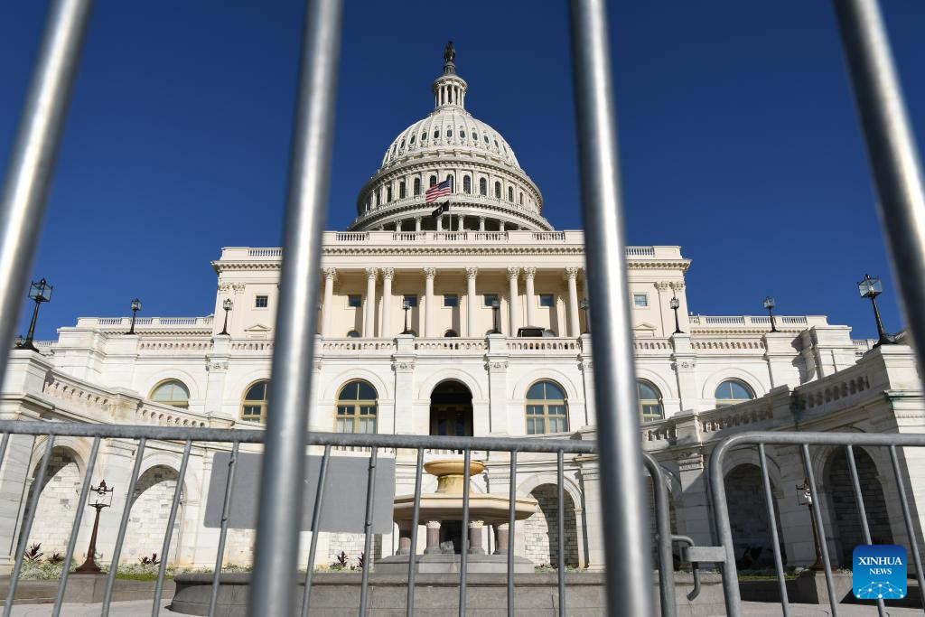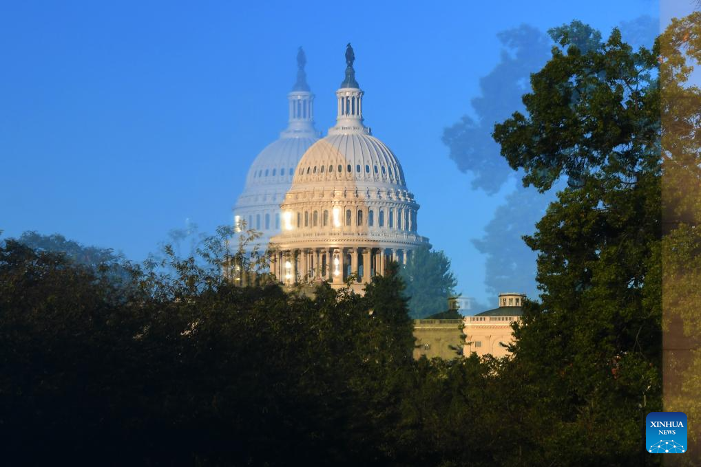 The U.S. Capitol building is seen reflected in the window of a building in Washington, D.C., the United States, Oct. 5, 2025. As the U.S. federal government entered a shutdown -- the first time in nearly seven years -- the confrontation between President Donald Trump's administration and the Democratic Party has further escalated.