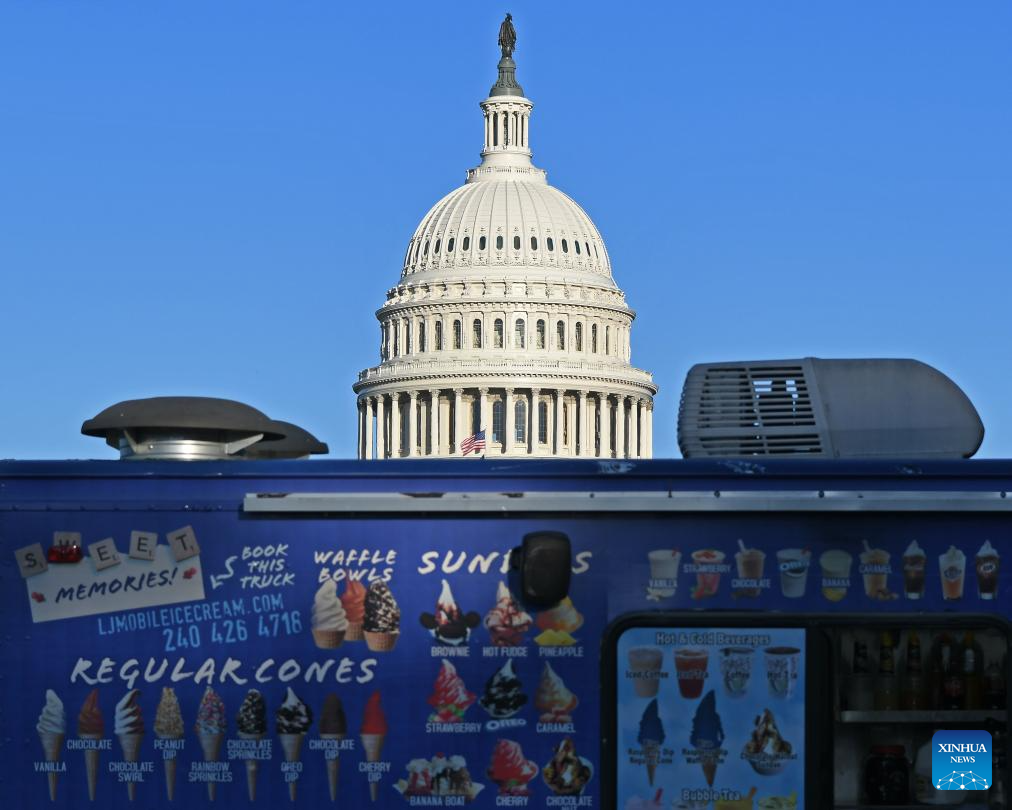 An ice cream truck is seen in front of the U.S. Capitol building in Washington, D.C., the United States, Oct. 5, 2025. As the U.S. federal government entered a shutdown -- the first time in nearly seven years -- the confrontation between President Donald Trump's administration and the Democratic Party has further escalated.
