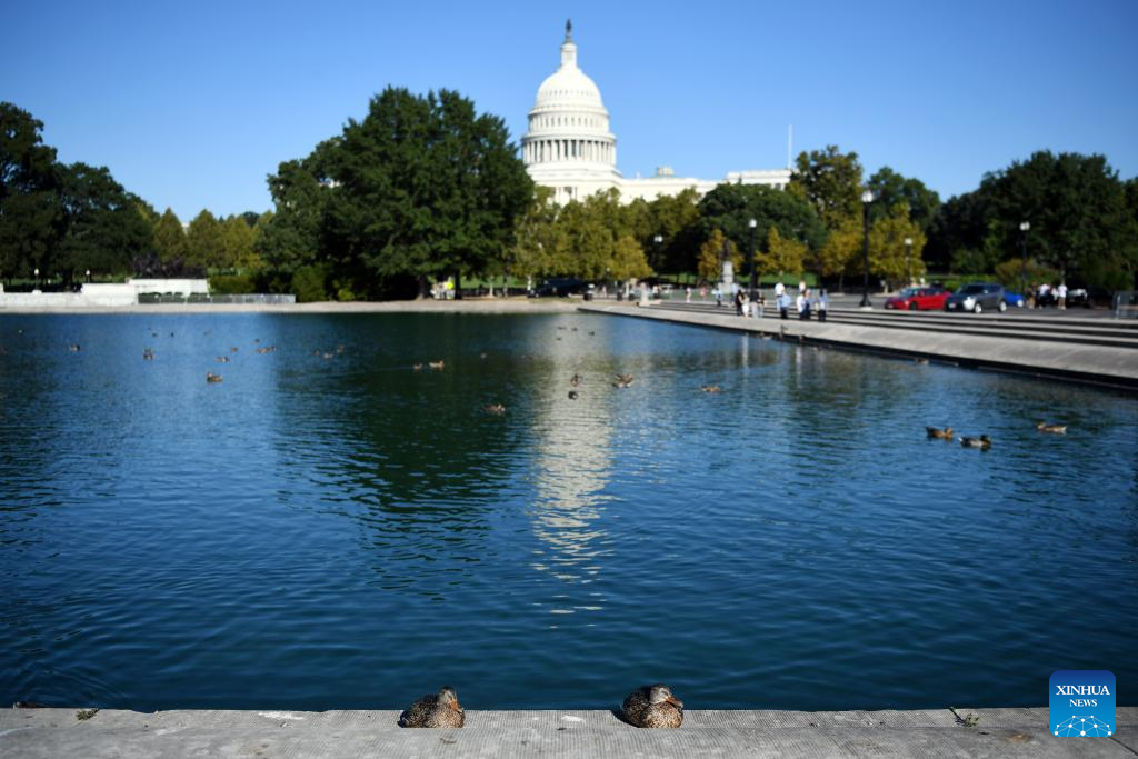 Ducks bask in the sun with the U.S. Capitol building in the background in Washington, D.C., the United States, Oct. 5, 2025. As the U.S. federal government entered a shutdown -- the first time in nearly seven years -- the confrontation between President Donald Trump's administration and the Democratic Party has further escalated.