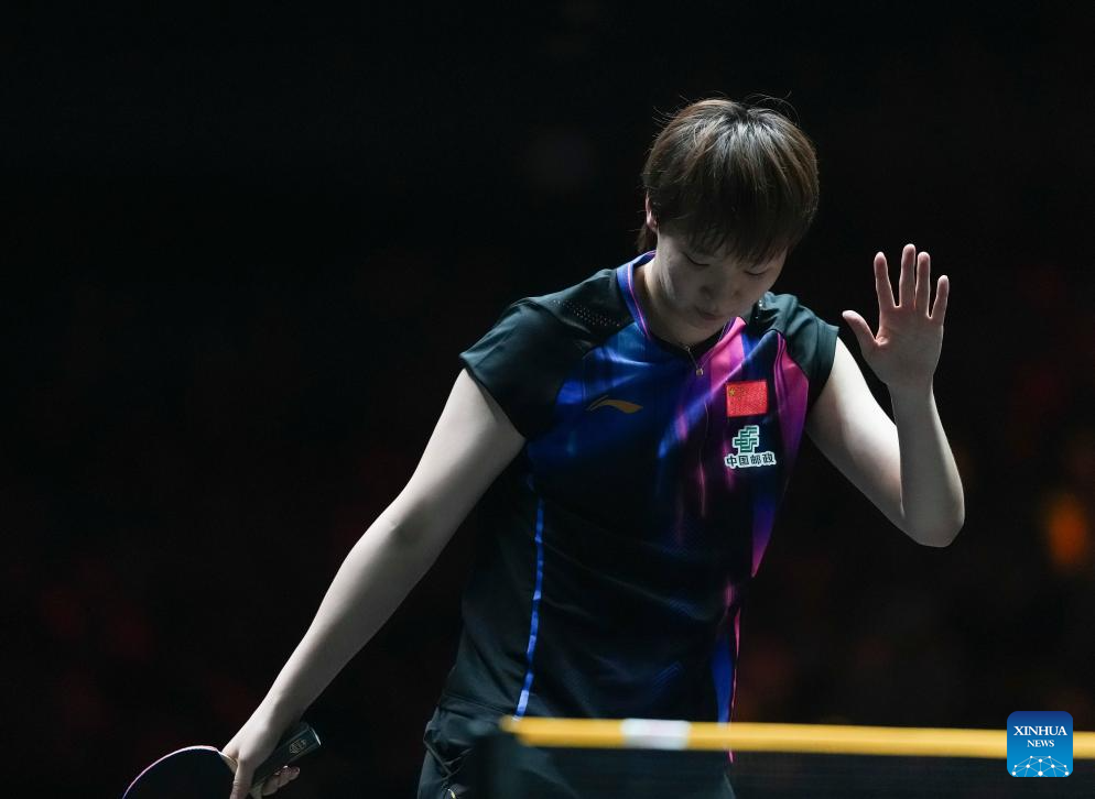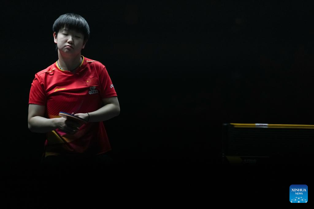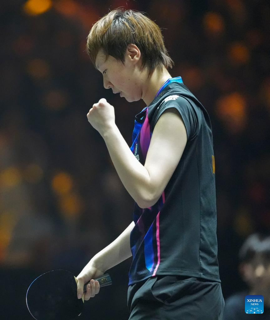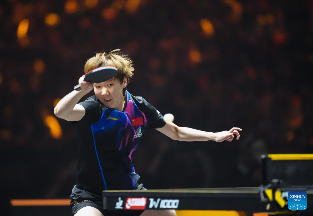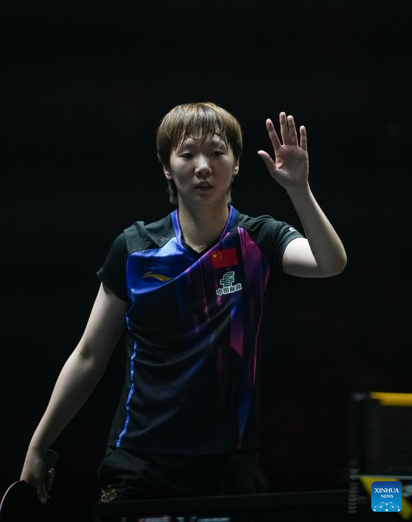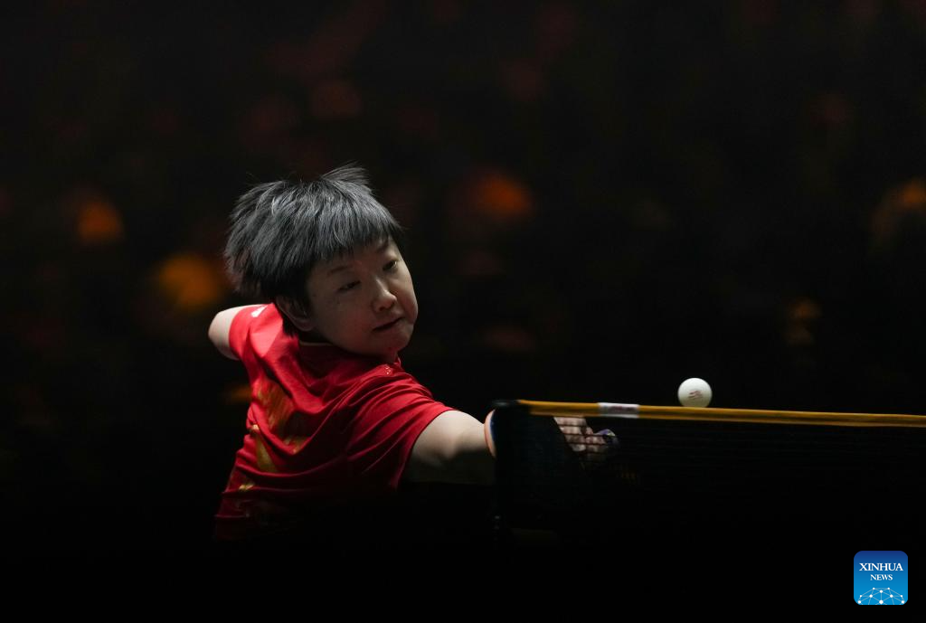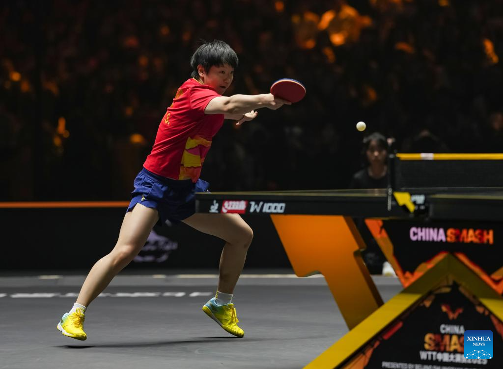 BEIJING, Oct. 5 (Xinhua) -- Wang Manyu won 4-2 against Sun Yingsha in an all-Chinese women's singles final at the World Table Tennis (WTT) China Smash on Sunday.