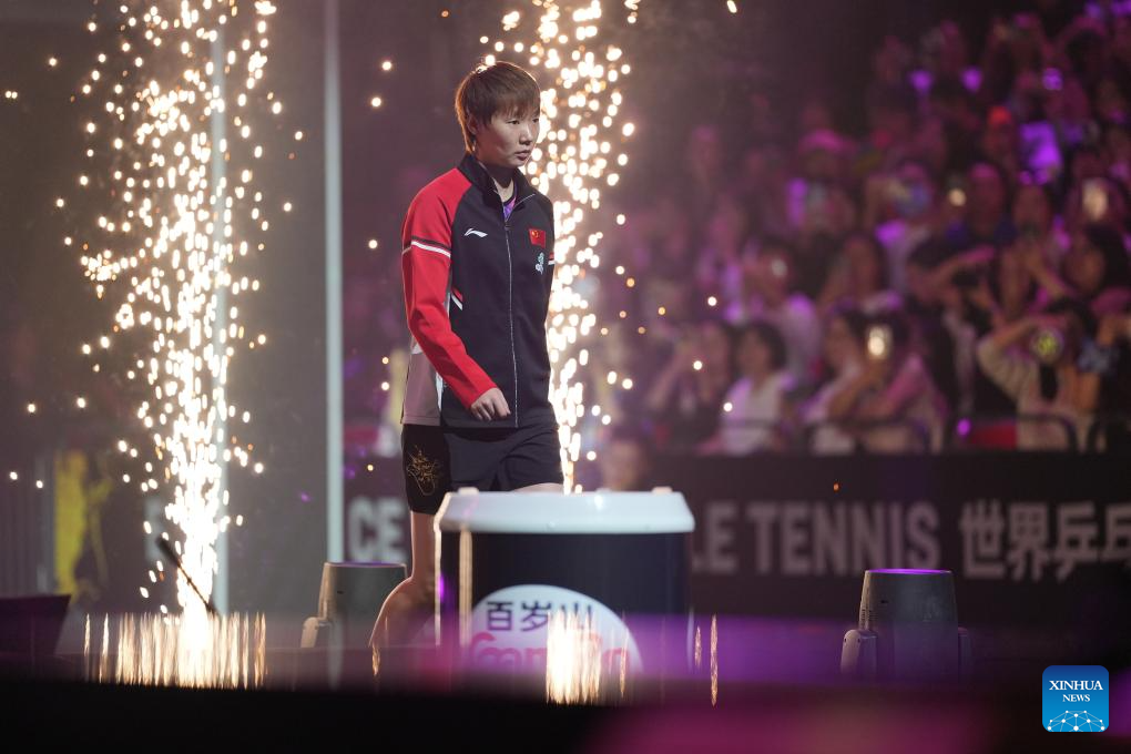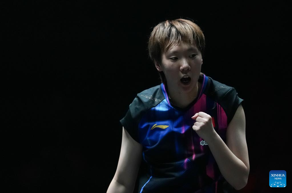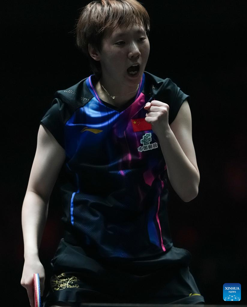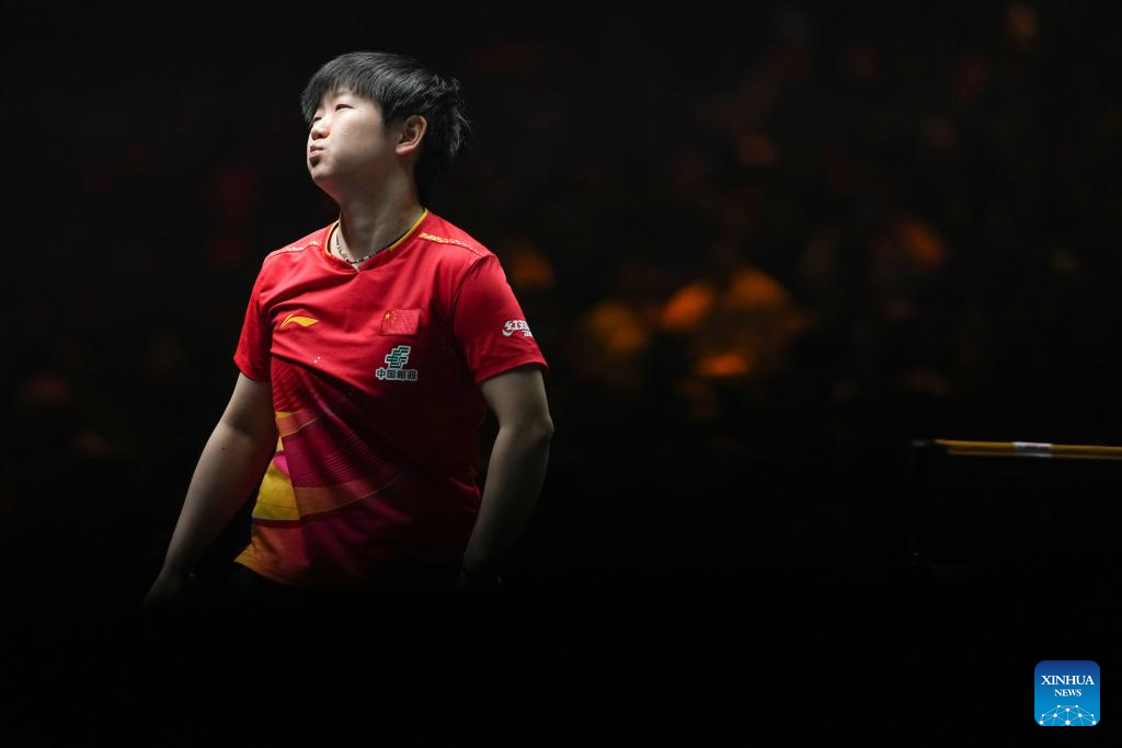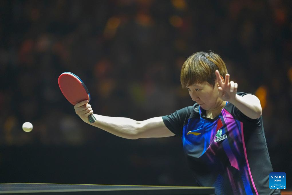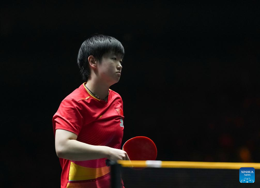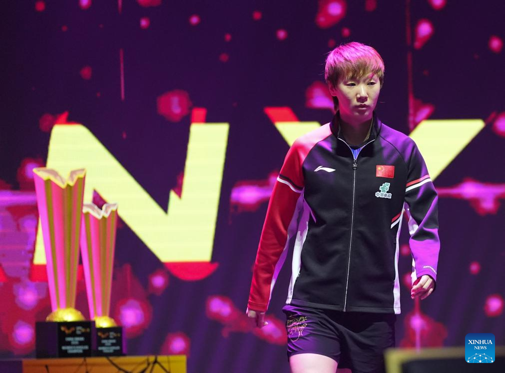 BEIJING, Oct. 5 (Xinhua) -- Wang Manyu won 4-2 against Sun Yingsha in an all-Chinese women's singles final at the World Table Tennis (WTT) China Smash on Sunday.