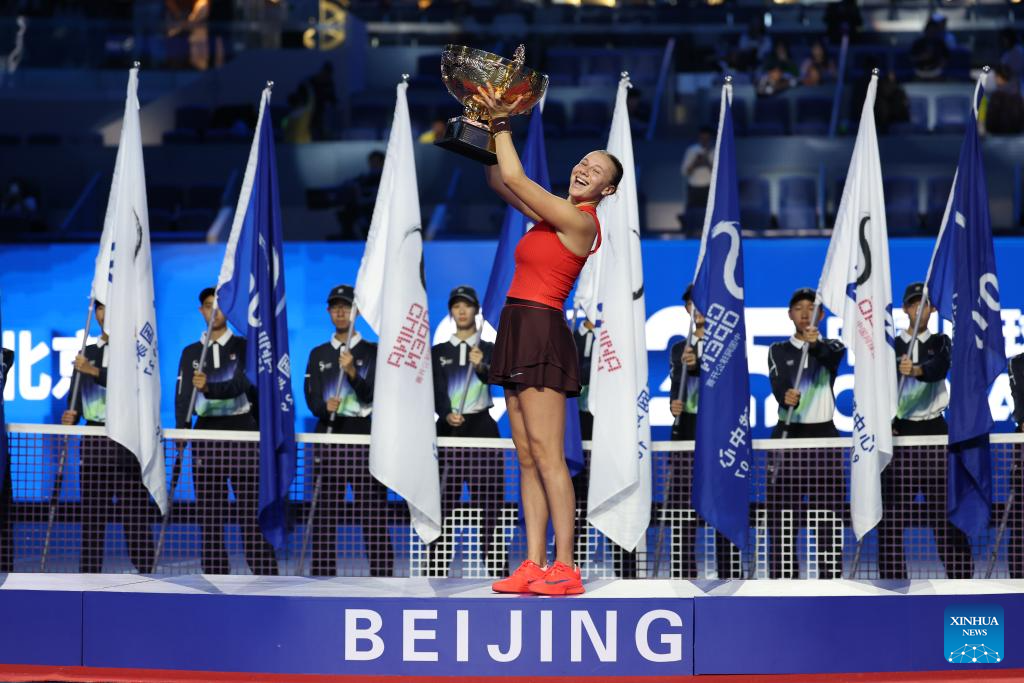 BEIJING, Oct. 5 (Xinhua) -- Amanda Anisimova captured her first China Open title after defeating Czech rising star Linda Noskova 6-0, 2-6, 6-2 in the women's singles final here on Sunday.