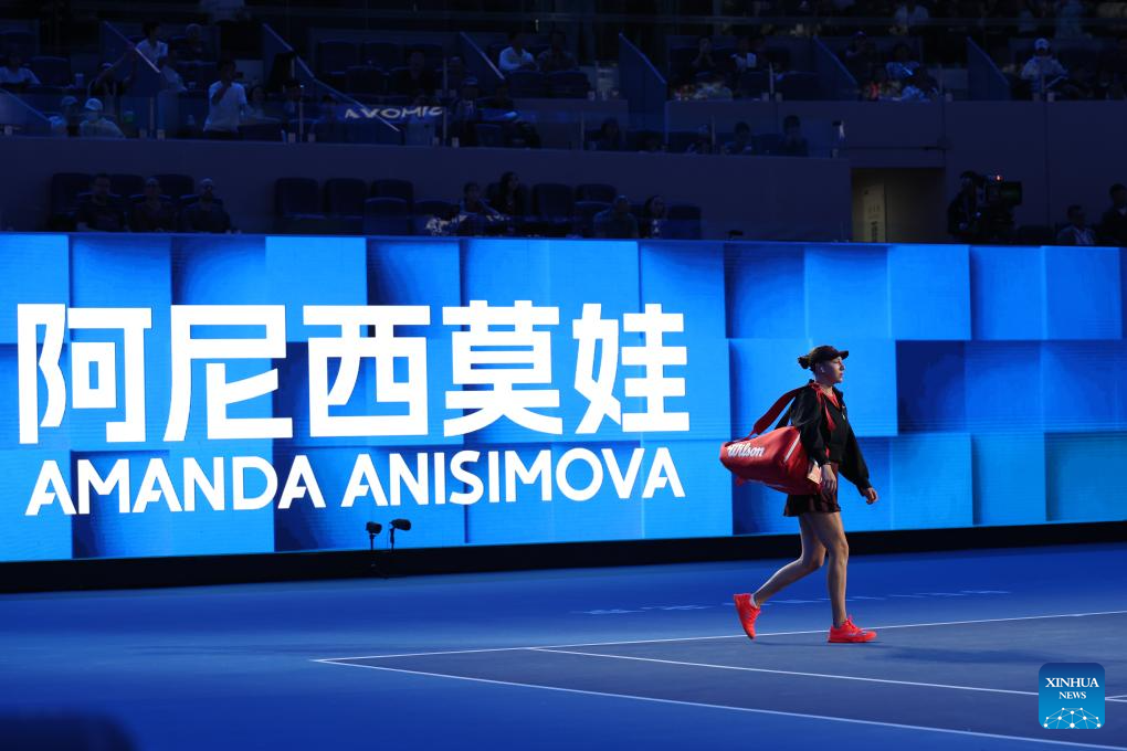 Amanda Anisimova enters the court before the women's singles final match between Amanda Anisimova of the United States and Linda Noskova of the Czech Republic at 2025 China Open tennis tournament in Beijing, China, Oct. 5, 2025. (Xinhua/Bai Xuefei)