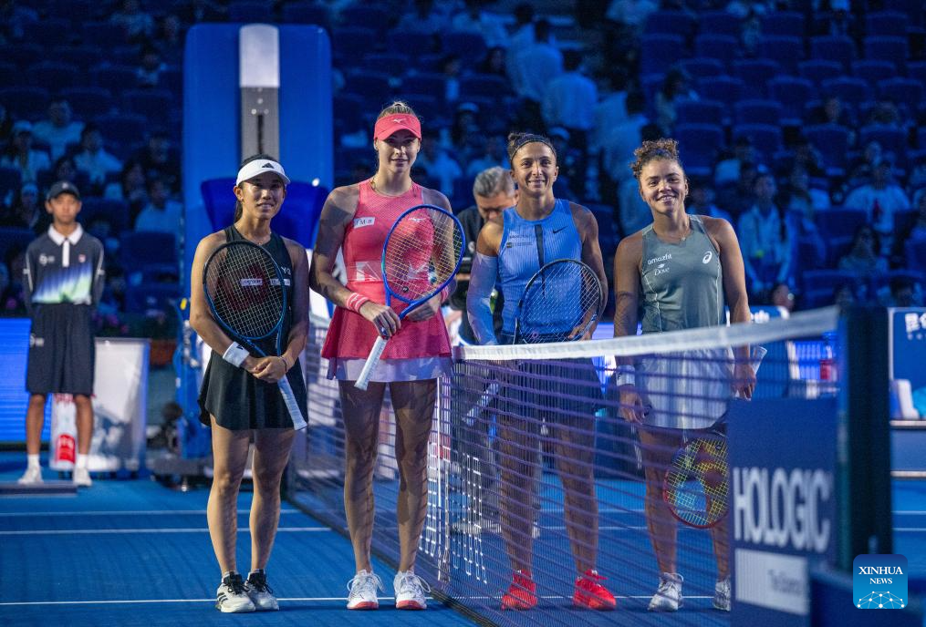 In the women's doubles final, second seeds Jasmine Paolini and Sara Errani of Italy rallied past Japan's Miyu Kato and Hungary's Fanny Stollar 6-7(1), 6-3, 10-2 to become the first pair to successfully defend the China Open women's doubles title.