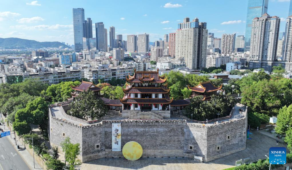 This aerial drone photo taken on Oct. 6, 2025 shows tourists visiting a scenic spot in Changsha, central China's Hunan Province. As China's National Day and Mid-Autumn Festival holidays converge, the nation's cultural activities, bustling transport networks and innovative consumption scenes are painting a vivid picture of economic resilience and growth potential. (Xinhua/Chen Zhenhai)
