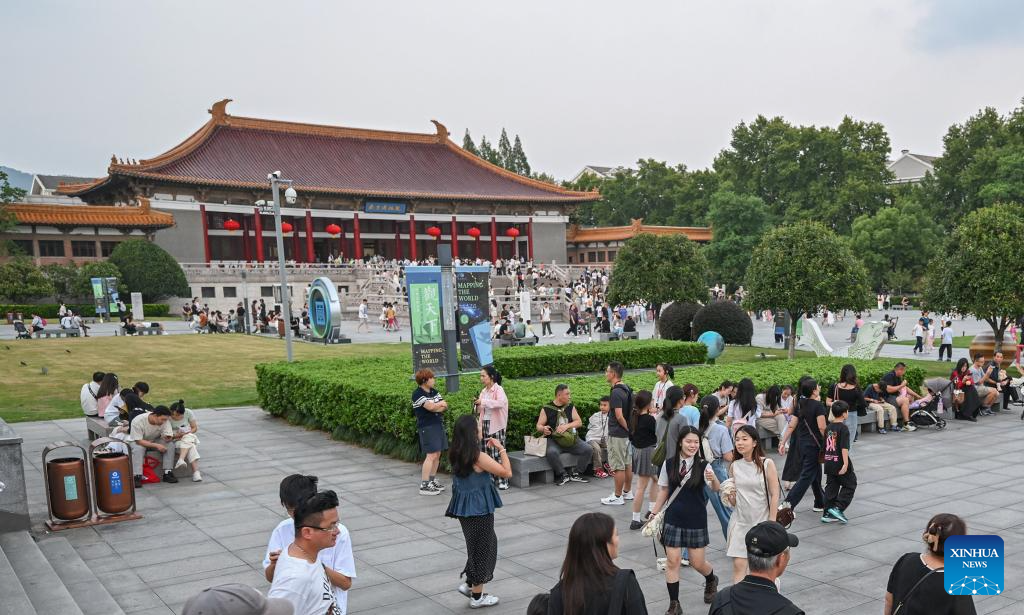 People visit Nanjing Museum in Nanjing, east China's Jiangsu Province, Oct. 4, 2025. As China's National Day and Mid-Autumn Festival holidays converge, the nation's cultural activities, bustling transport networks and innovative consumption scenes are painting a vivid picture of economic resilience and growth potential. (Xinhua/Li He)
