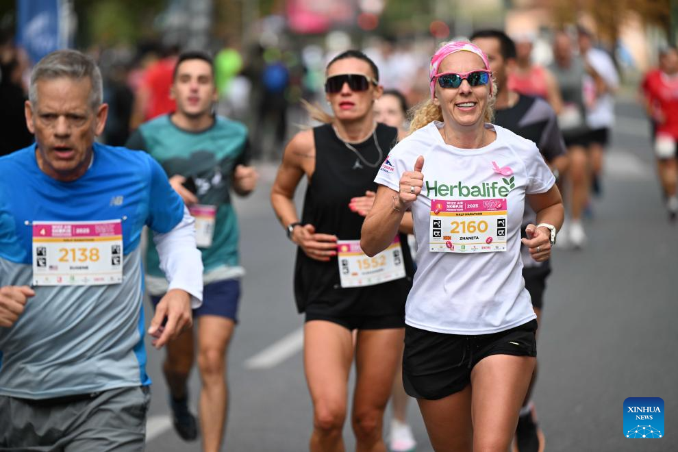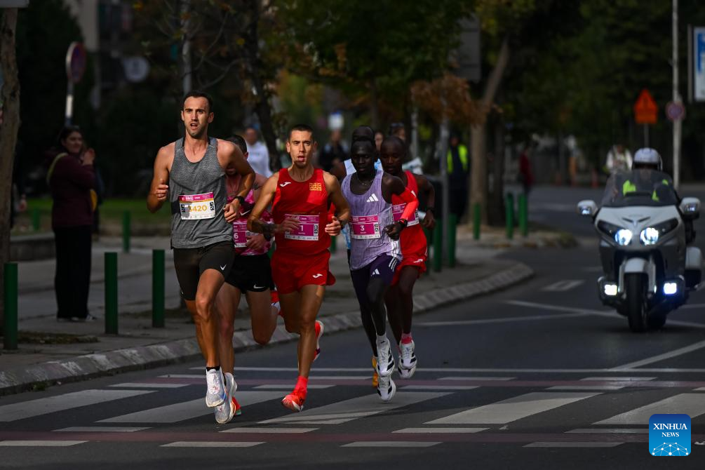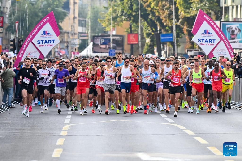 Participants compete during Skopje Marathon in Skopje, North Macedonia, Oct. 5, 2025. (Photo by Tomislav Georgiev/Xinhua)