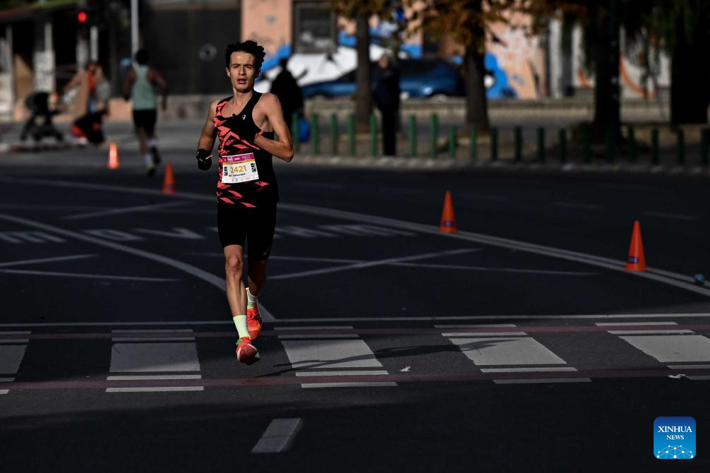 A participant competes during Skopje Marathon in Skopje, North Macedonia, Oct. 5, 2025. (Photo by Tomislav Georgiev/Xinhua)