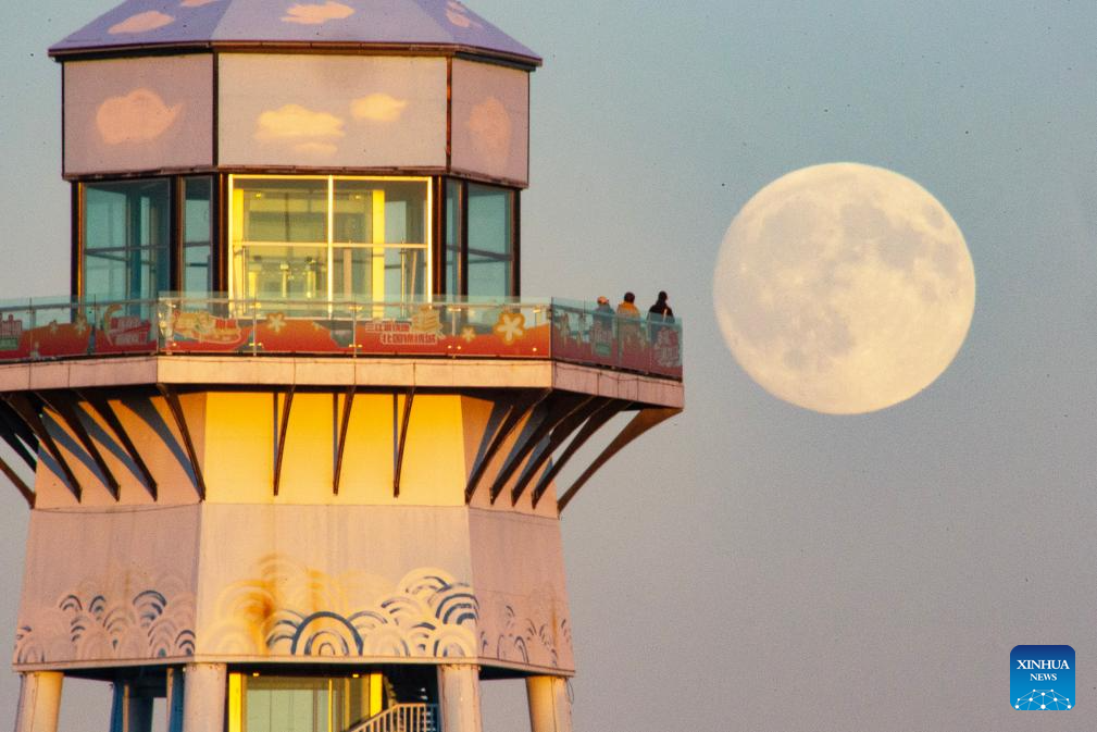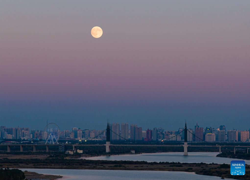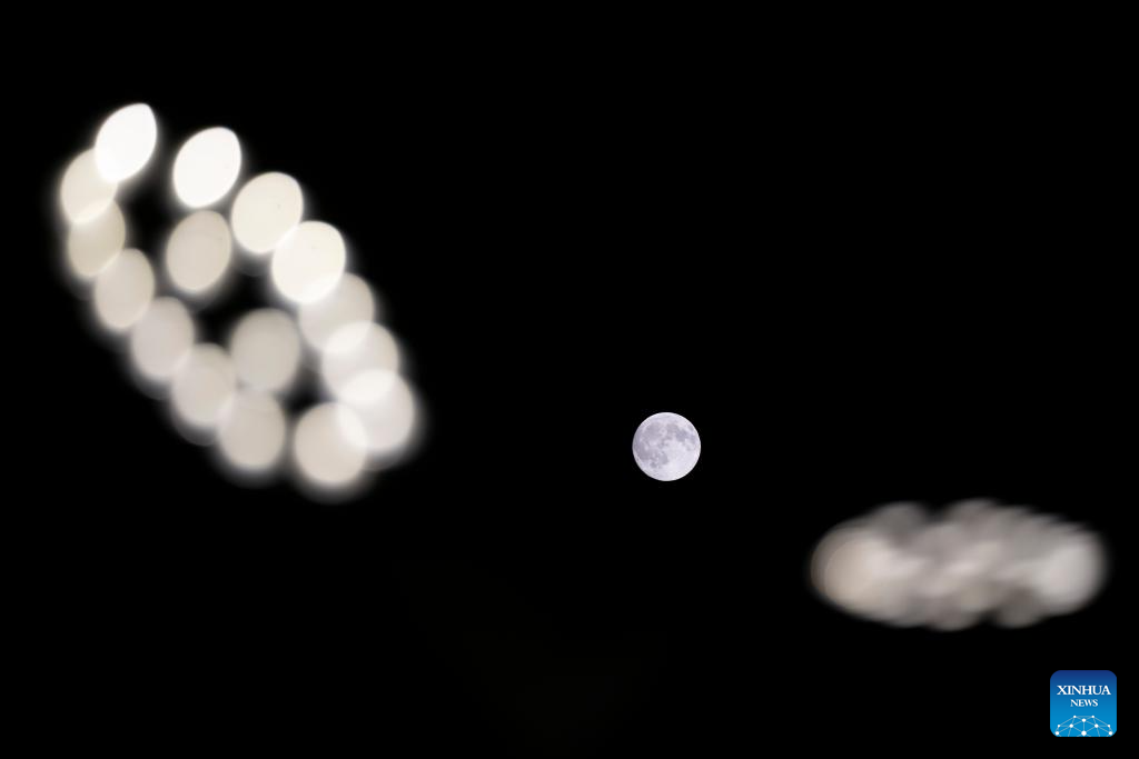 A full moon is pictured in Harbin, northeast China's Heilongjiang Province, Oct. 6, 2025. Monday marks this year's Mid-Autumn Festival, which is celebrated annually on the 15th day of the eighth month in the Chinese lunar calendar. People across China admire the full moon to celebrate the traditional holiday. (Xinhua/Zhang Tao)