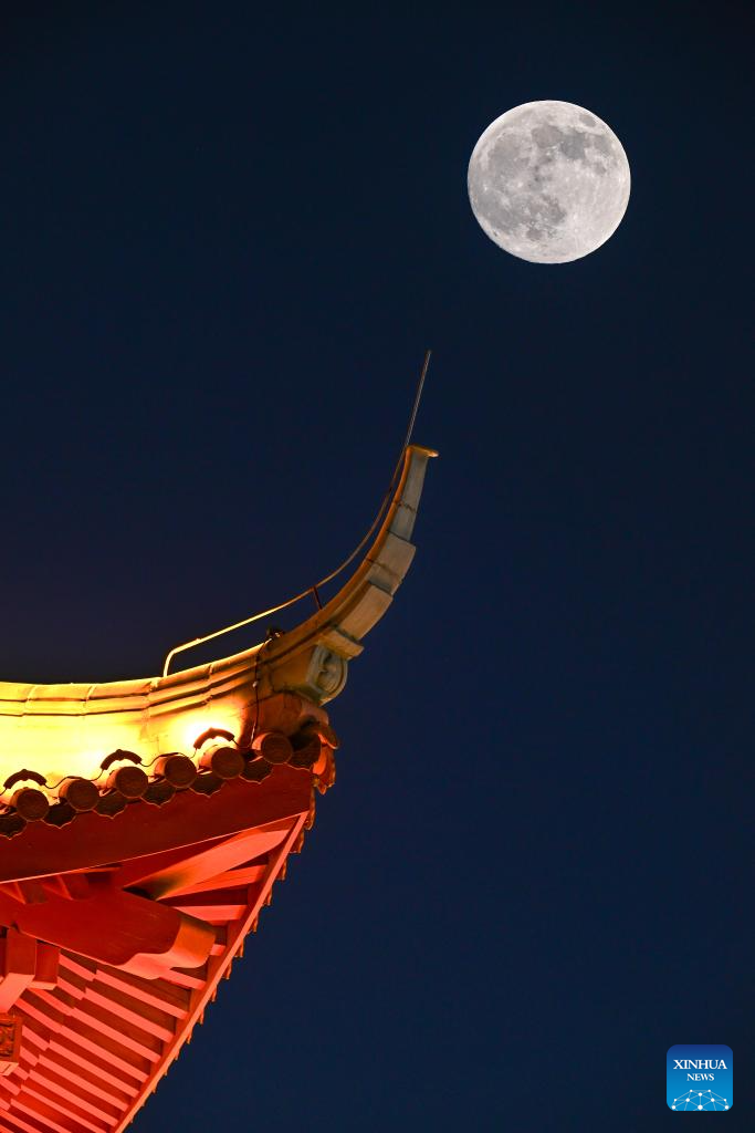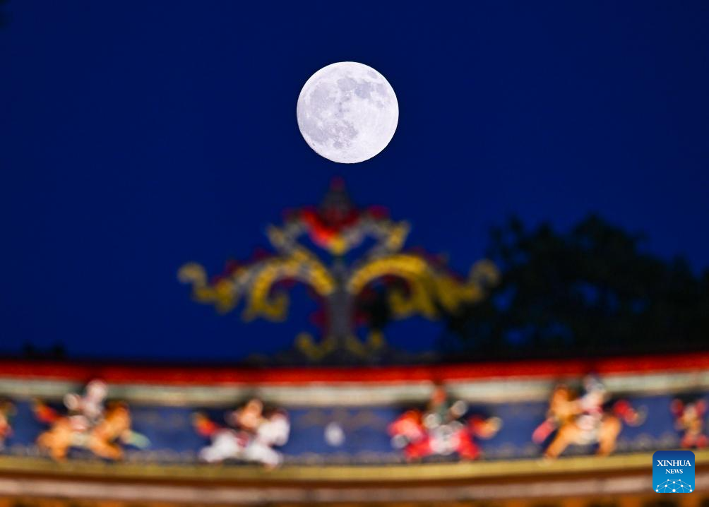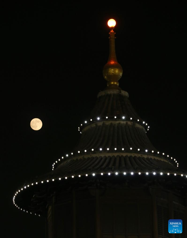 A full moon is pictured near the Palace Museum in Beijing, capital of China, Oct. 6, 2025. Monday marks this year's Mid-Autumn Festival, which is celebrated annually on the 15th day of the eighth month in the Chinese lunar calendar. People across China admire the full moon to celebrate the traditional holiday. (Xinhua/Liu Jinhai)
