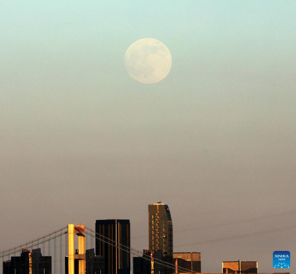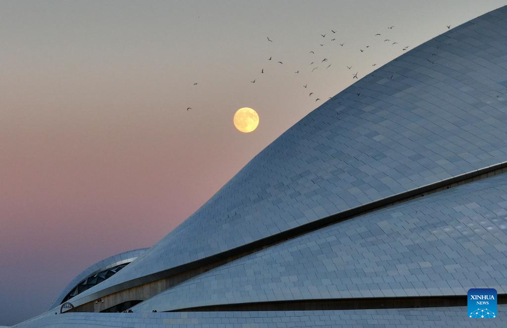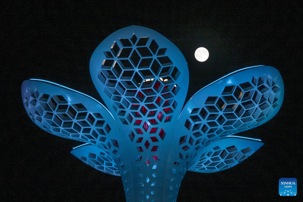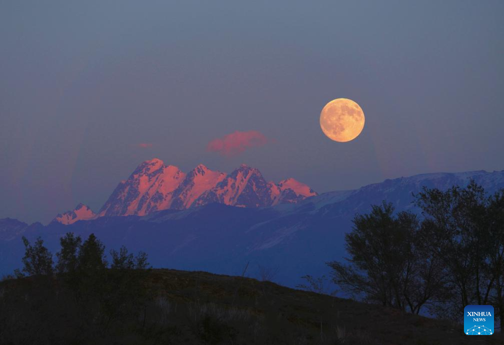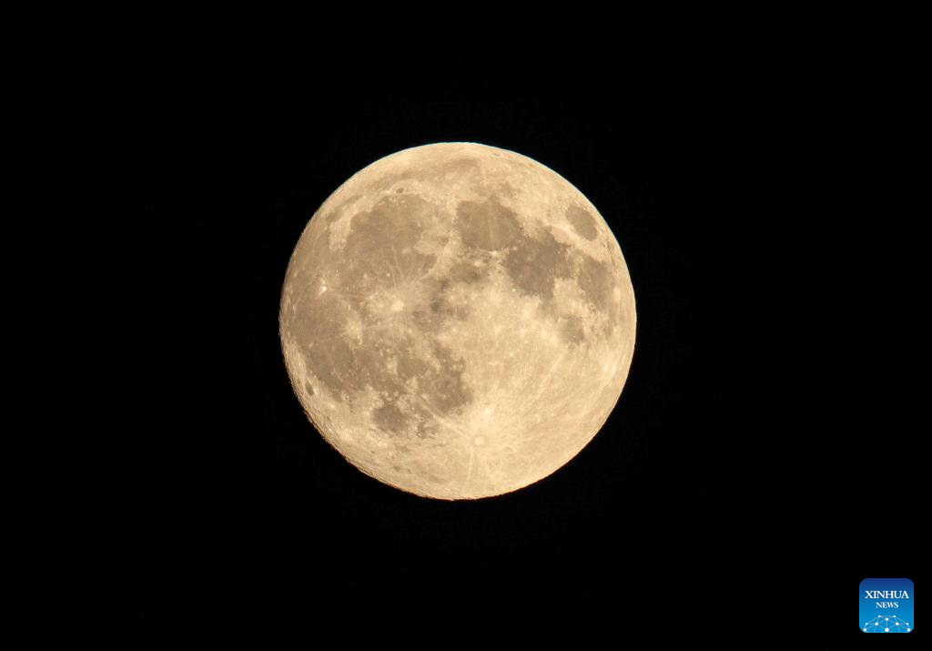 A full moon is pictured in Urumqi, northwest China's Xinjiang Uygur Autonomous Region, Oct. 6, 2025. Monday marks this year's Mid-Autumn Festival, which is celebrated annually on the 15th day of the eighth month in the Chinese lunar calendar. People across China admire the full moon to celebrate the traditional holiday. (Xinhua/Xu Hongyan)