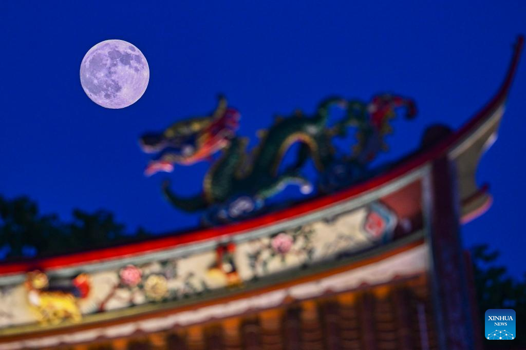 This photo taken on Oct. 6, 2025 shows a full moon over the sky in Zhangpu County, southeast China's Fujian Province. Monday marks this year's Mid-Autumn Festival, which is celebrated annually on the 15th day of the eighth month in the Chinese lunar calendar. People across China admire the full moon to celebrate the traditional holiday. (Photo by Lin Duhong/Xinhua)