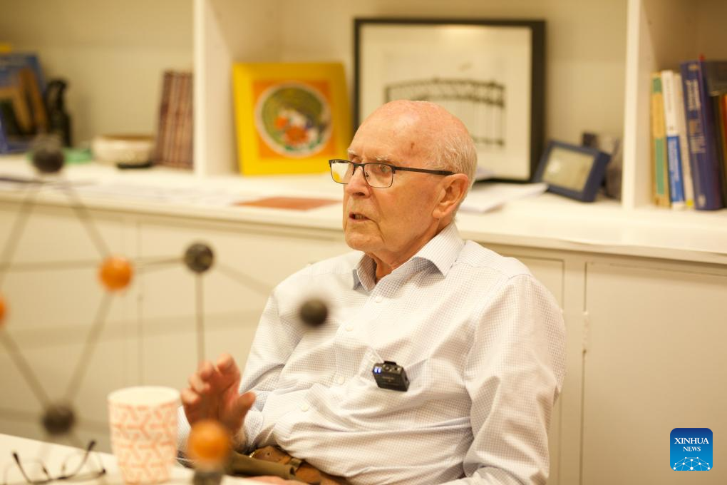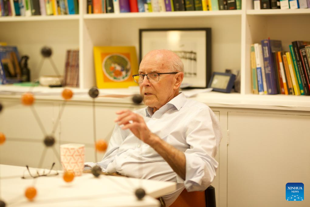 This photo taken on Oct. 9, 2025 shows Professor Richard Robson receiving an interview with University of Melbourne media team in Melbourne, Australia. Richard Robson was awarded the 2025 Nobel Prize in Chemistry together with two other scientists for developing metal-organic frameworks (MOFs). (University of Melbourne/Handout via Xinhua)