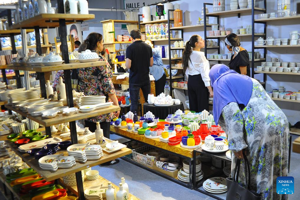 People visit a handicrafts fair in Tunis, Tunisia, Oct. 8, 2025. The second Tunisian Handicrafts Fair is held here from Oct. 6 to 12, with over 150 handicraft vendors participating. (Photo by Adel Ezzine/Xinhua)
