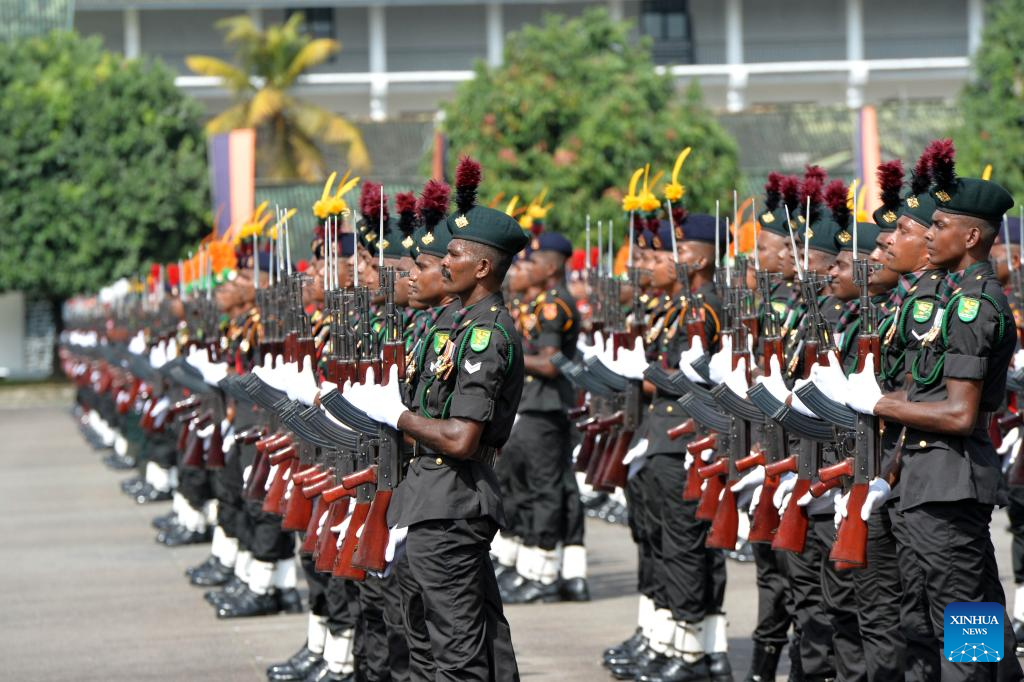 Soldiers attend a ceremony marking Sri Lanka Army's 76th anniversary in Colombo, Sri Lanka on Oct. 10, 2025. (Photo by Gayan Sameera/Xinhua)