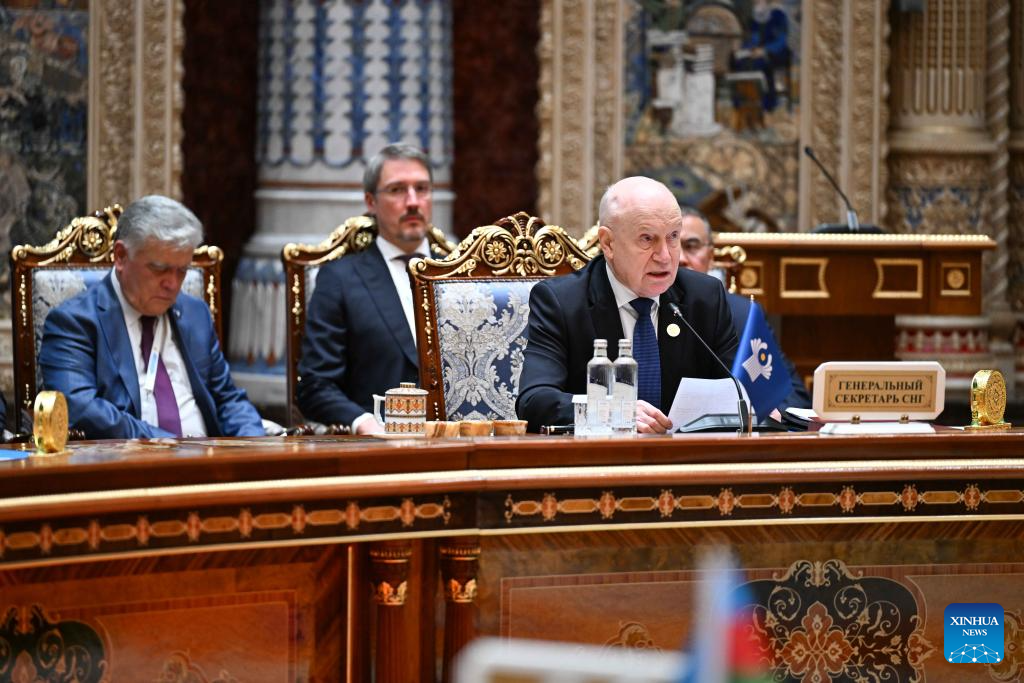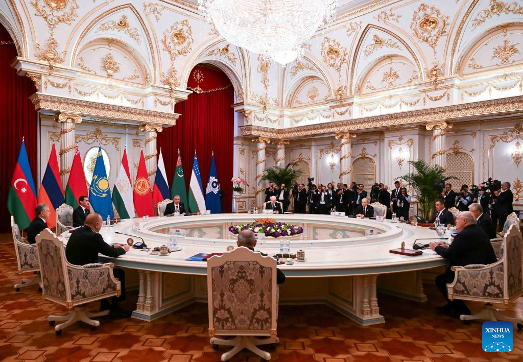 A meeting of the Council of Heads of State of the Commonwealth of Independent States (CIS) is held in Dushanbe, Tajikistan, on Oct. 10, 2025. A meeting of the Council of Heads of State of the CIS was held here Friday to review security and military cooperation, said the press service of the CIS Executive Committee. (Xinhua/Li Renzi)