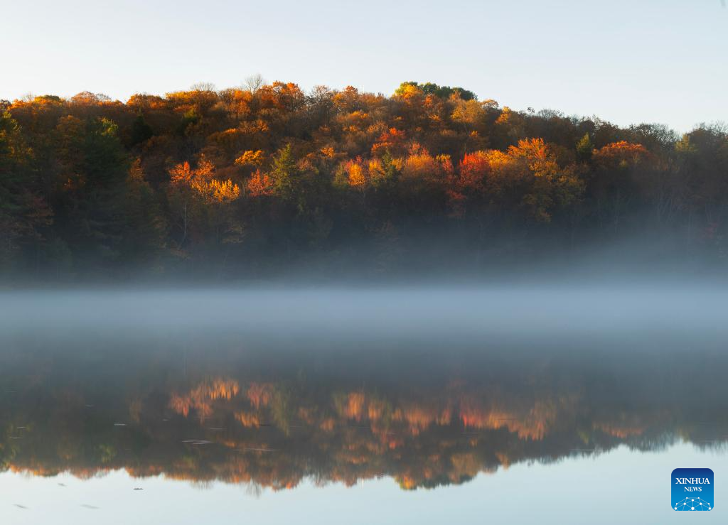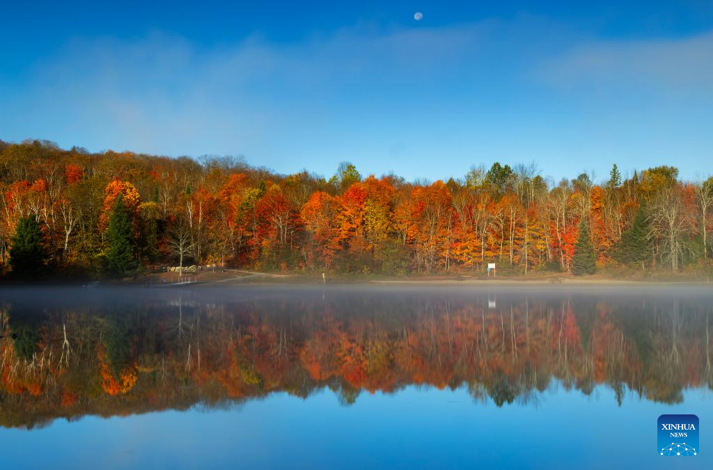 This photo taken on Oct. 9, 2025 shows the autumn scenery in a park in Huntsville, Ontario, Canada. (Photo by Zou Zheng/Xinhua)