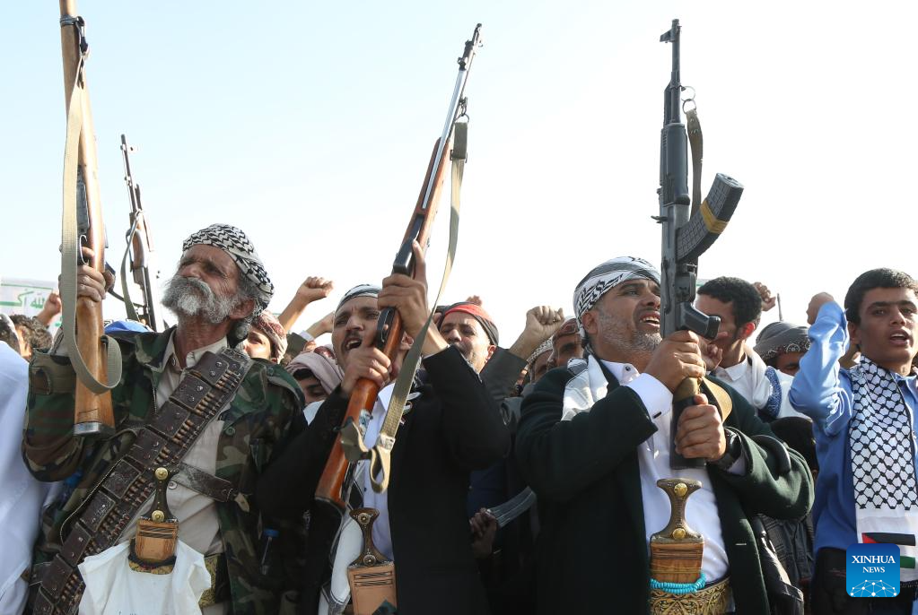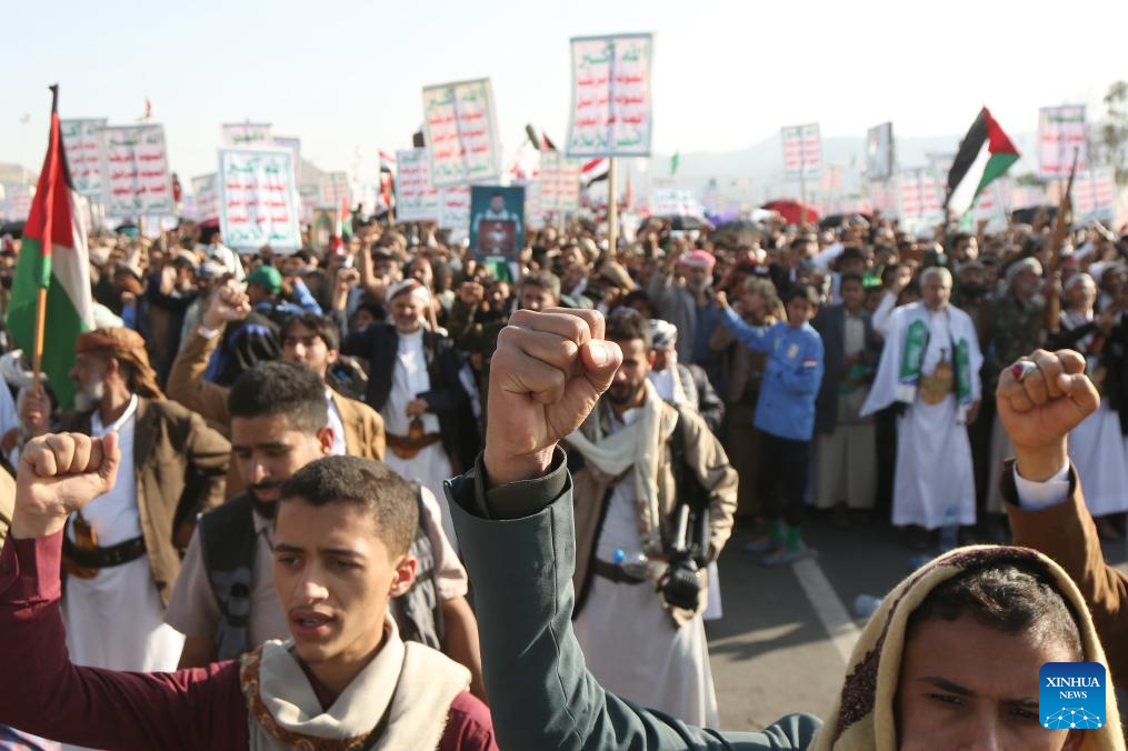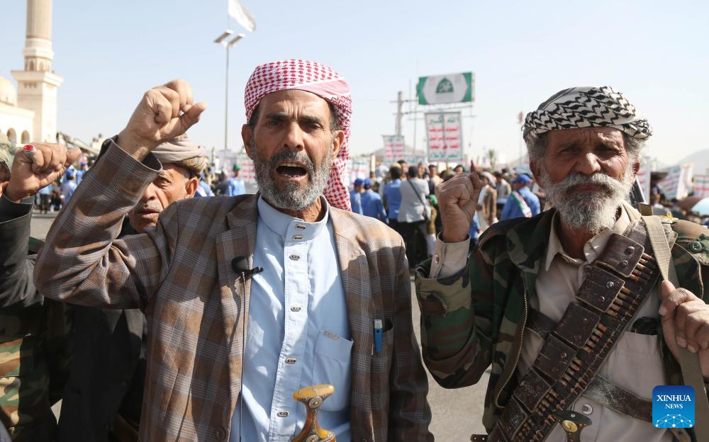SANAA, Oct. 10 (Xinhua) -- Thousands of supporters of Yemen's Houthi group rallied Friday in the capital, Sanaa, to celebrate a cease-fire between Israel and Hamas, calling it a victory for Palestinians.