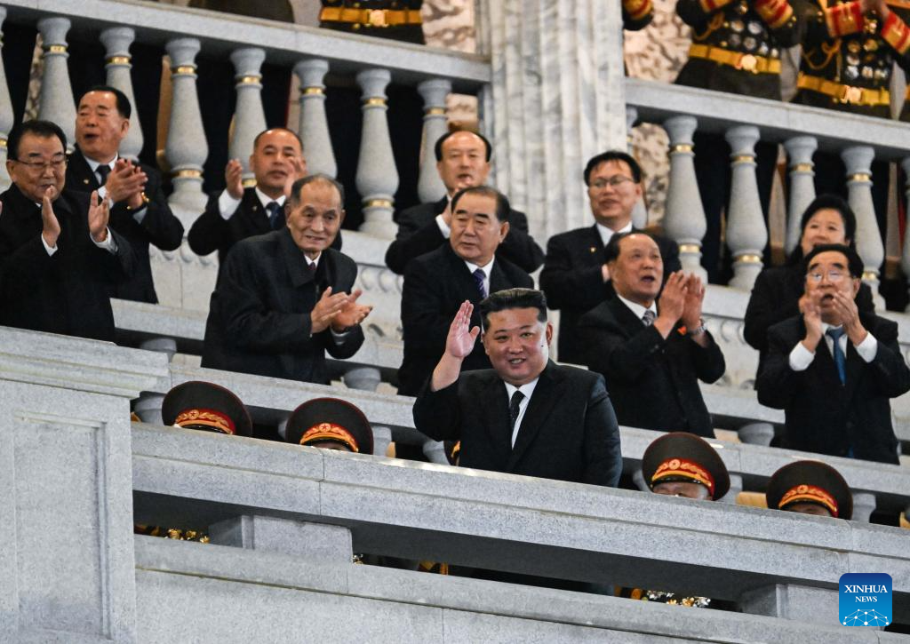 The DPRK held the parade Friday at Kim Il Sung Square in central Pyongyang. Kim Jong Un, general secretary of the WPK and president of the State Affairs of the DPRK, made a speech at the event. (Xinhua/Ding Haitao)