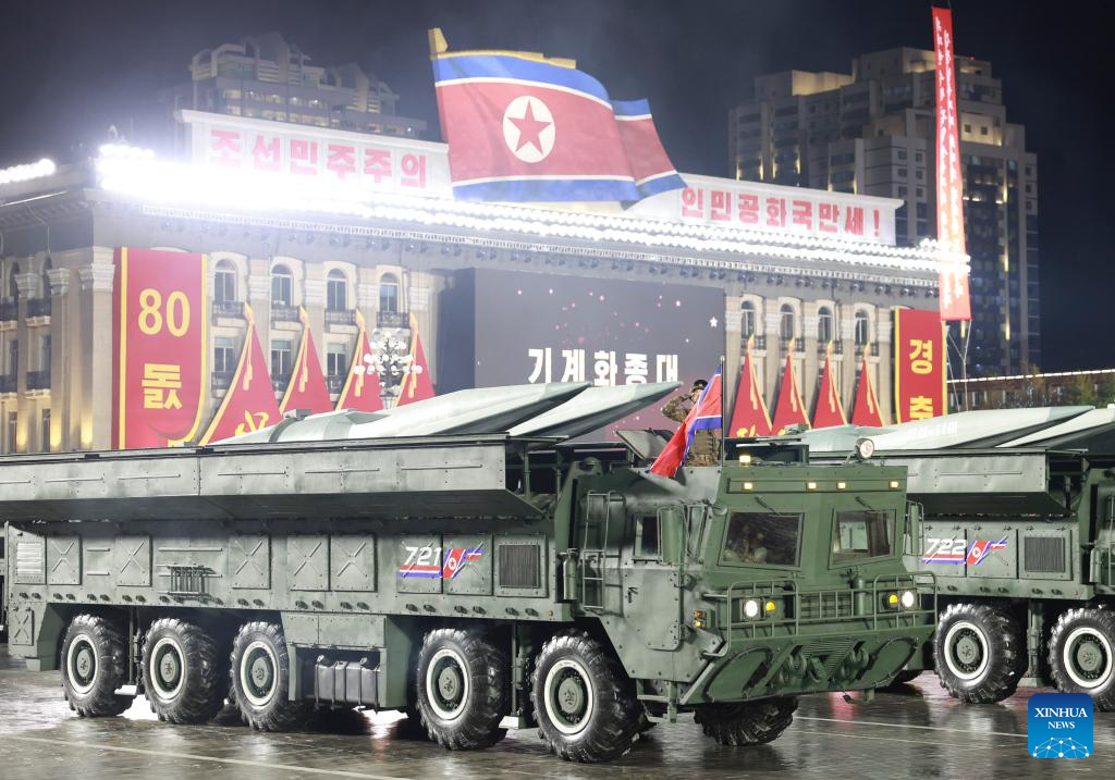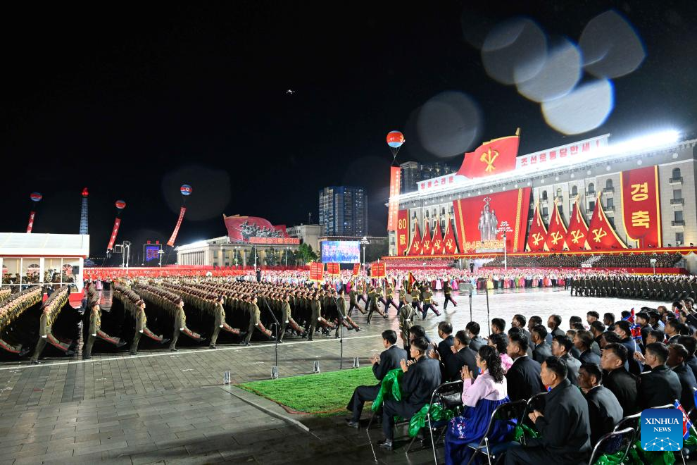 PYONGYANG, Oct. 10 (Xinhua) -- The Democratic People's Republic of Korea (DPRK) held a military parade Friday at Kim Il Sung Square in central Pyongyang to celebrate the 80th founding anniversary of the Workers' Party of Korea (WPK).