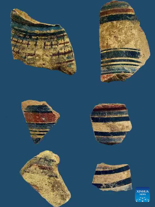 This undated image shows artifacts from a military fortress discovered in North Sinai province, Egypt. Egypt's Ministry of Tourism and Antiquities announced Saturday the discovery of a New Kingdom period (1550-1069 BC) military fortress in the country's northeastern North Sinai province. The fortress, located at the Tell El-Kharouba site in the Sheikh Zuweid area, is one of the largest and most important found along the ancient Horus Military Road, situated near the Mediterranean coast, the ministry said in a statement. (Egyptian Ministry of Tourism and Antiquities/Handout via Xinhua)