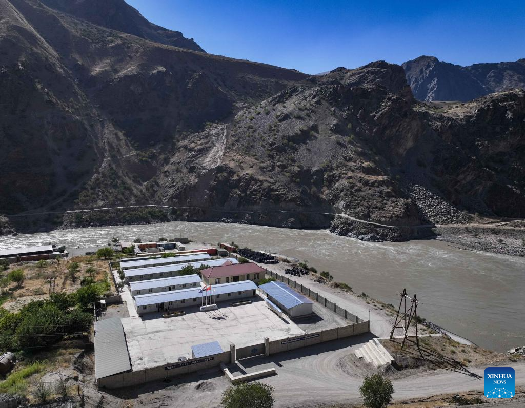 An aerial drone photo shows the field camp of China Road and Bridge Corporation (CRBC) near Kalai Khumb, Tajikistan, on Sept. 11, 2025. The China-Tajikistan Highway -- also known as the Pamir Highway -- was first built in the 1940s. Stretching more than 1,000 km from Dushanbe to Karasu on the China-Tajikistan border, it is vital for Tajikistan's transport and external links.