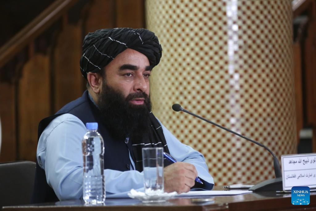 KABUL, Oct. 12 (Xinhua) -- Afghan government's chief spokesman Zabihullah Mujahid has utterly rejected any reports on a deal with the United States over Bagram airbase, saying that Afghans won't give any part of their soil to any country.