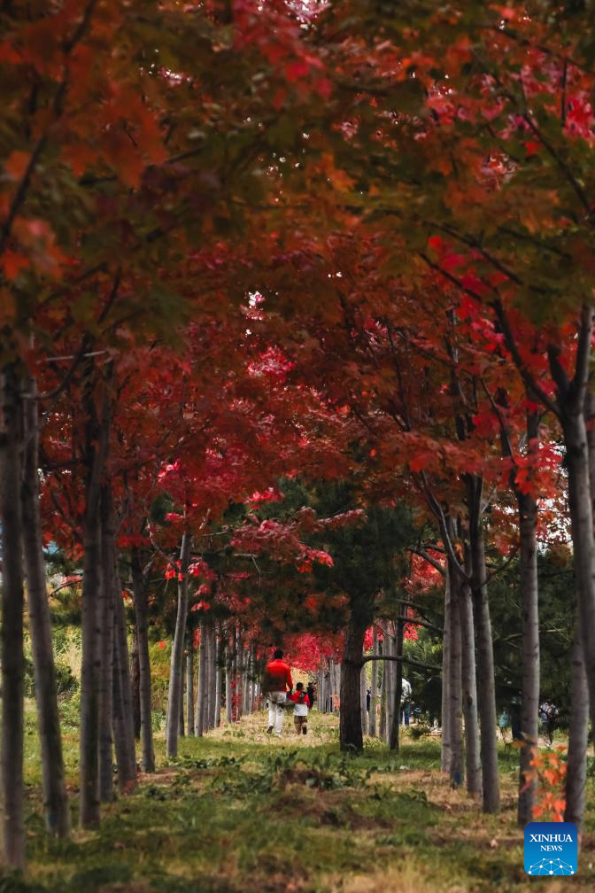 Tourists enjoy the autumn scenery in the Changchun Botanical Garden in Changchun, northeast China's Jilin Province, on Oct. 12, 2025. (Xinhua/Xu Chang)