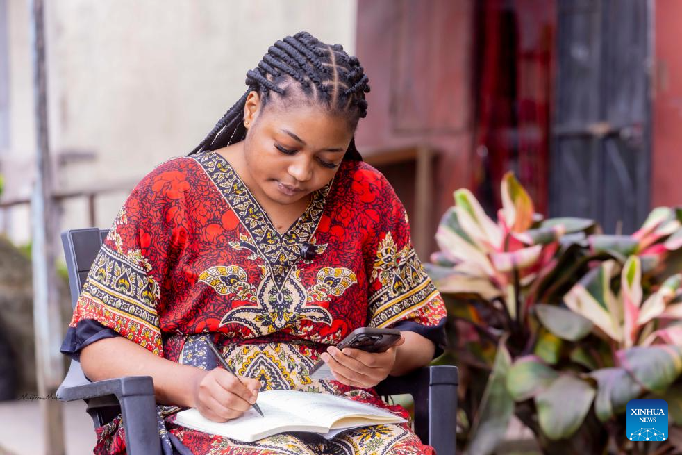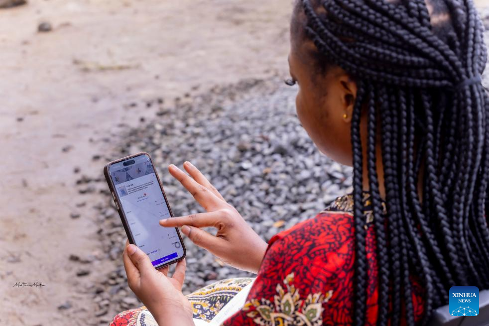Elove Marie-Cleophas Messanga makes online purchases and arranges shipments from a Chinese company on her phone in Buea, the chief town of the Southwest Region, Cameroon, on Sept. 20, 2025. (Photo by Muleng Timngum/Xinhua)