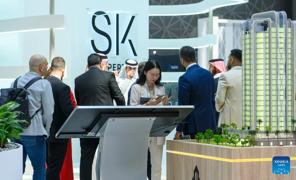 People visit the 13th edition of Cityscape Real Estate Exhibition at Doha Exhibition and Convention Center in Doha, Qatar, Oct. 12, 2025. Running from Oct. 12 to 14, the exhibition showcases groundbreaking projects and offers attendees the chance to engage with top developers. (Photo by Nikku/Xinhua)