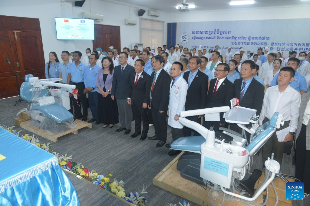 PHNOM PENH, Oct. 13 (Xinhua) -- China on Monday donated two sets of state-of-the-art dental treatment chairs to Cambodia to help improve the quality of oral healthcare services for Cambodian children.