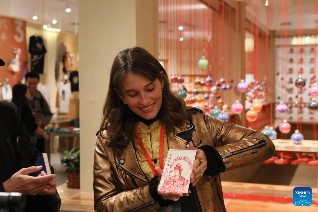 International guests visit a night market in Dunhuang, northwest China's Gansu Province, Oct. 11, 2025. From October 11 to 12, guests from Armenia, Italy, Turkey, Nepal, and other countries attending the Global Mayors Dialogue -- Dunhuang event visited cultural landmarks in Dunhuang, experiencing the historical charm of the city. (Xinhua/Fan Peishen)