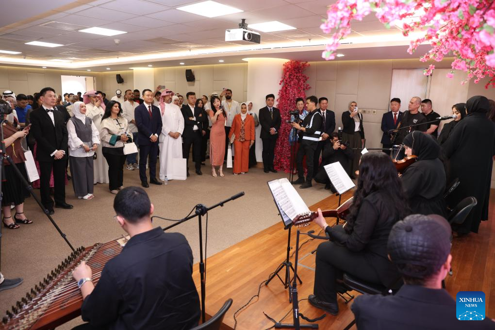 A band performs at the China Cultural Center in Kuwait, Hawalli Governorate, Kuwait, Oct. 12, 2025. The official inauguration ceremony for the Chinese Cultural Center in Kuwait was held here on Sunday, marking the full operation of the Gulf region's first Chinese cultural center. (Photo by Asad/Xinhua)