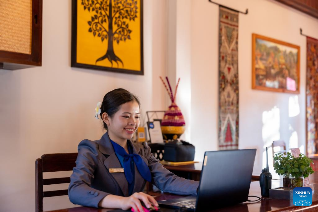 A woman works at a hotel in Luang Prabang, Laos, Oct. 10, 2025. According to the World Bank statistics, the female population in Laos accounted for 49.8 percent of the country's total population in 2024. (Photo by Kaikeo Saiyasane/Xinhua)