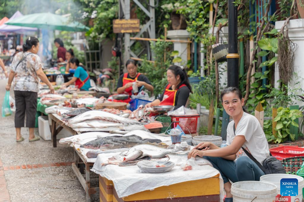 Vendors sell fish at a morning market in Luang Prabang, Laos, Oct. 11, 2025. According to the World Bank statistics, the female population in Laos accounted for 49.8 percent of the country's total population in 2024. (Photo by Kaikeo Saiyasane/Xinhua)