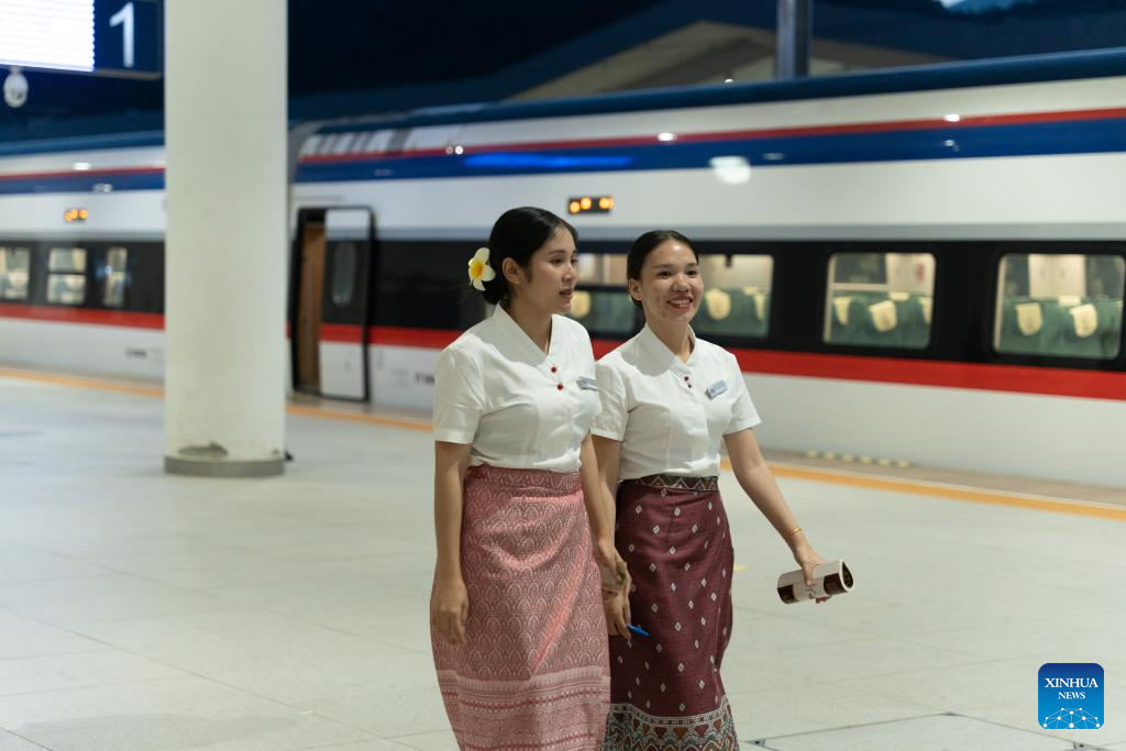Staff members work at the Luang Prabang Station of the China-Laos Railway in Luang Prabang, Laos, Oct. 11, 2025. According to the World Bank statistics, the female population in Laos accounted for 49.8 percent of the country's total population in 2024. (Photo by Kaikeo Saiyasane/Xinhua)
