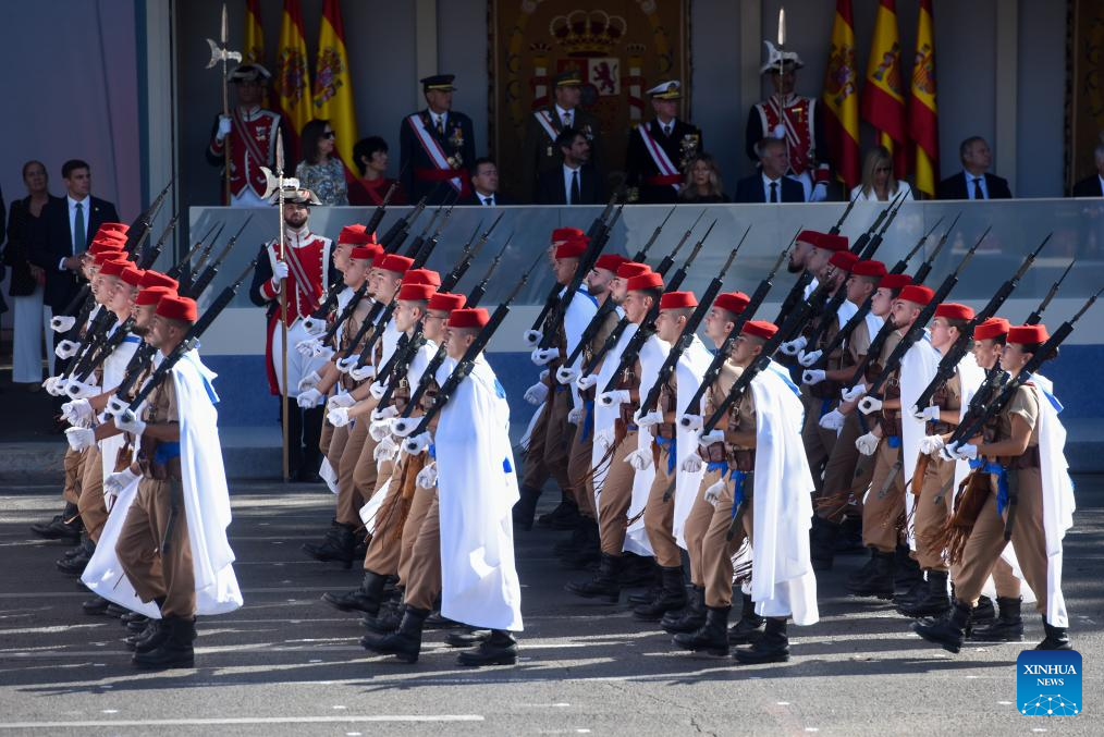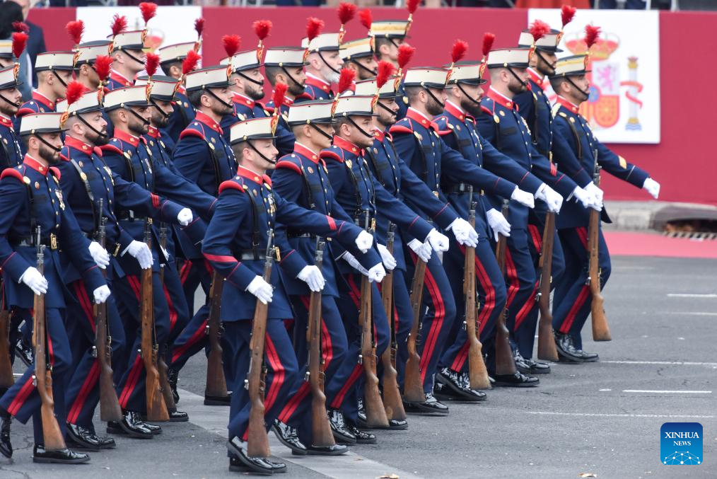 Soldiers are pictured during a military parade commemorating the National Day in Madrid, Spain, Oct. 12, 2025. (Photo by Gustavo Valiente/Xinhua)