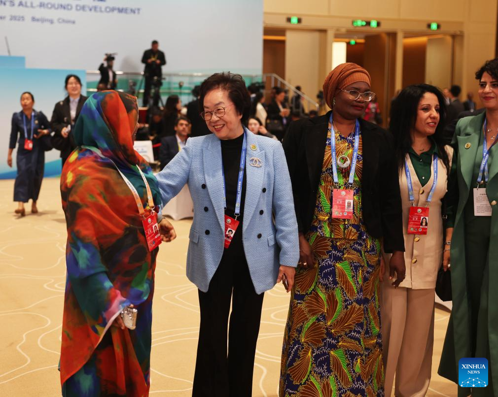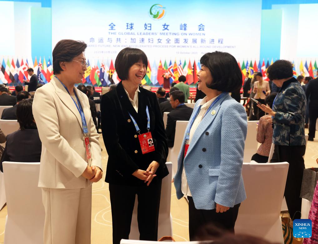 Participants communicate while attending the Global Leaders' Meeting on Women in Beijing, capital of China, Oct. 13, 2025. The Global Leaders' Meeting on Women was held in Beijing on Monday. (Xinhua/Liu Weibing)