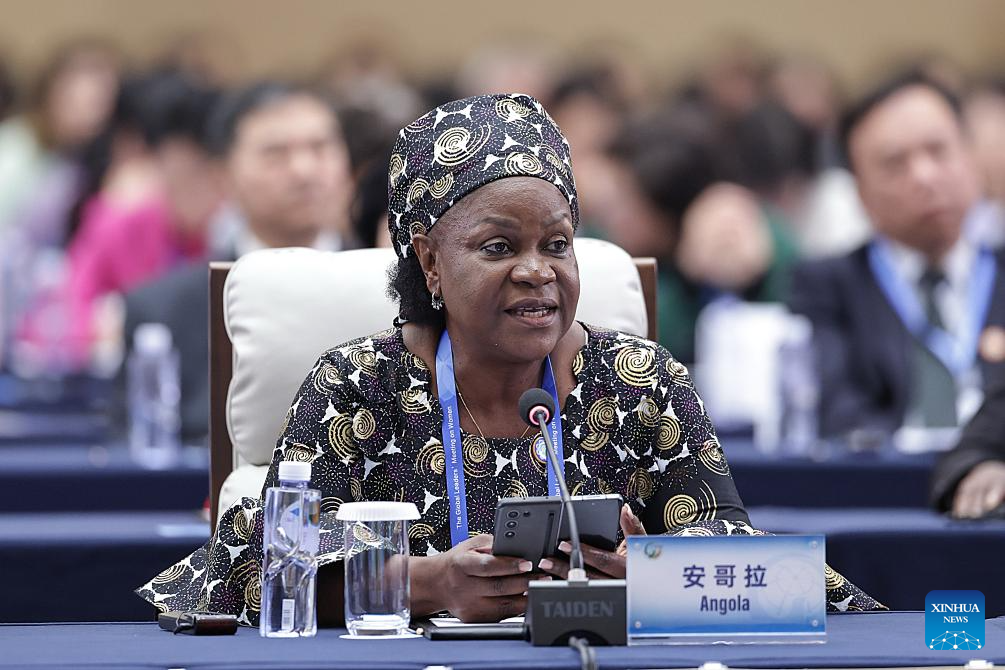 A representative from Angola attends the plenary meeting of the Global Leaders' Meeting on Women in Beijing, capital of China, Oct. 13, 2025. (Xinhua/Zhang Yuwei)