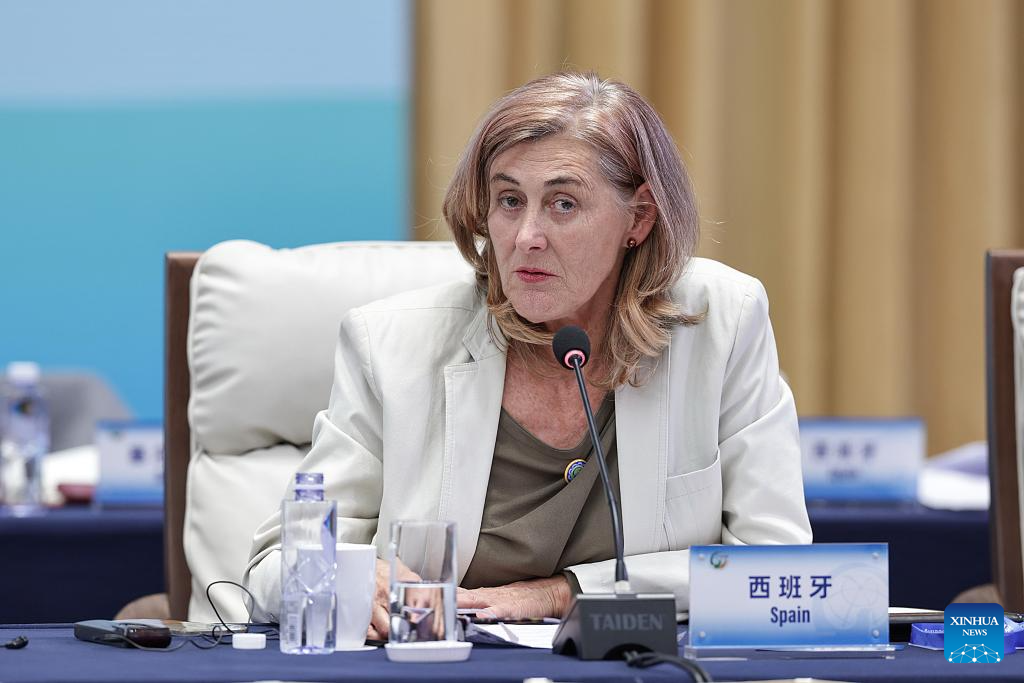A representative from Spain attends the plenary meeting of the Global Leaders' Meeting on Women in Beijing, capital of China, Oct. 13, 2025. (Xinhua/Zhang Yuwei)