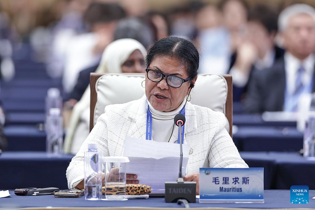 A representative from Mauritius attends the plenary meeting of the Global Leaders' Meeting on Women in Beijing, capital of China, Oct. 13, 2025. (Xinhua/Zhang Yuwei)