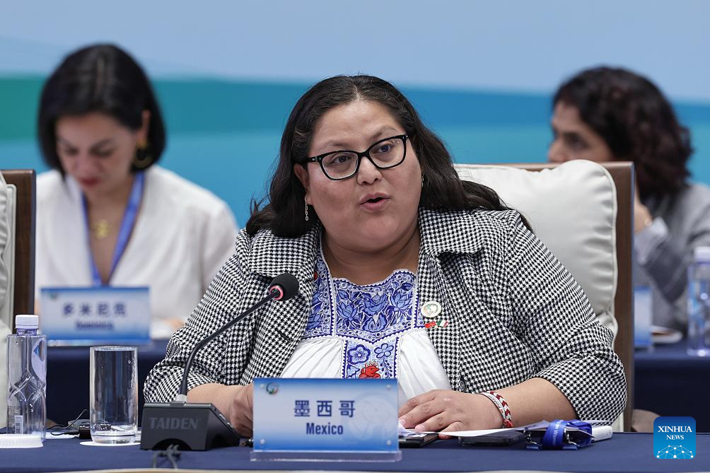 A representative from Mexico attends the plenary meeting of the Global Leaders' Meeting on Women in Beijing, capital of China, Oct. 13, 2025. (Xinhua/Zhang Yuwei)
