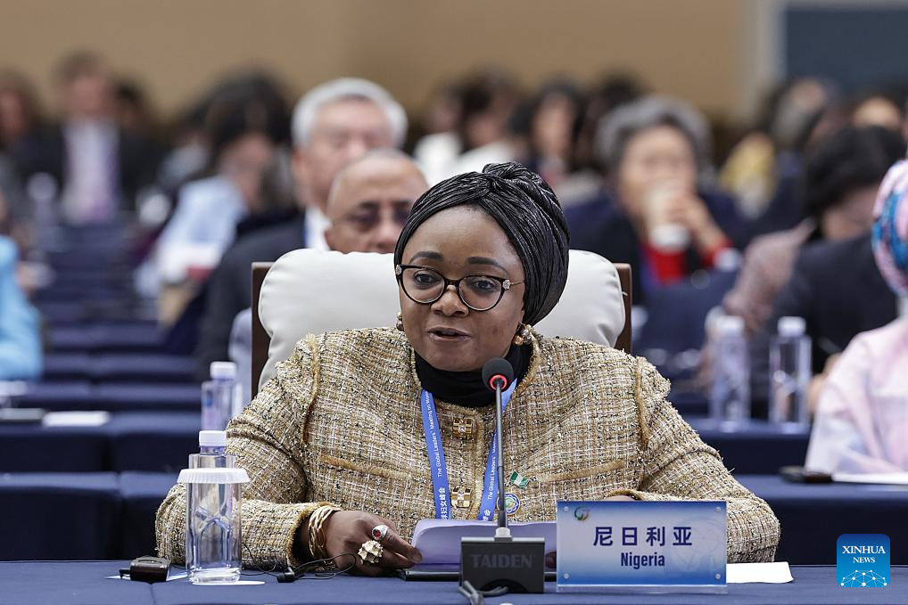 A representative from Nigeria attends the plenary meeting of the Global Leaders' Meeting on Women in Beijing, capital of China, Oct. 13, 2025. (Xinhua/Zhang Yuwei)