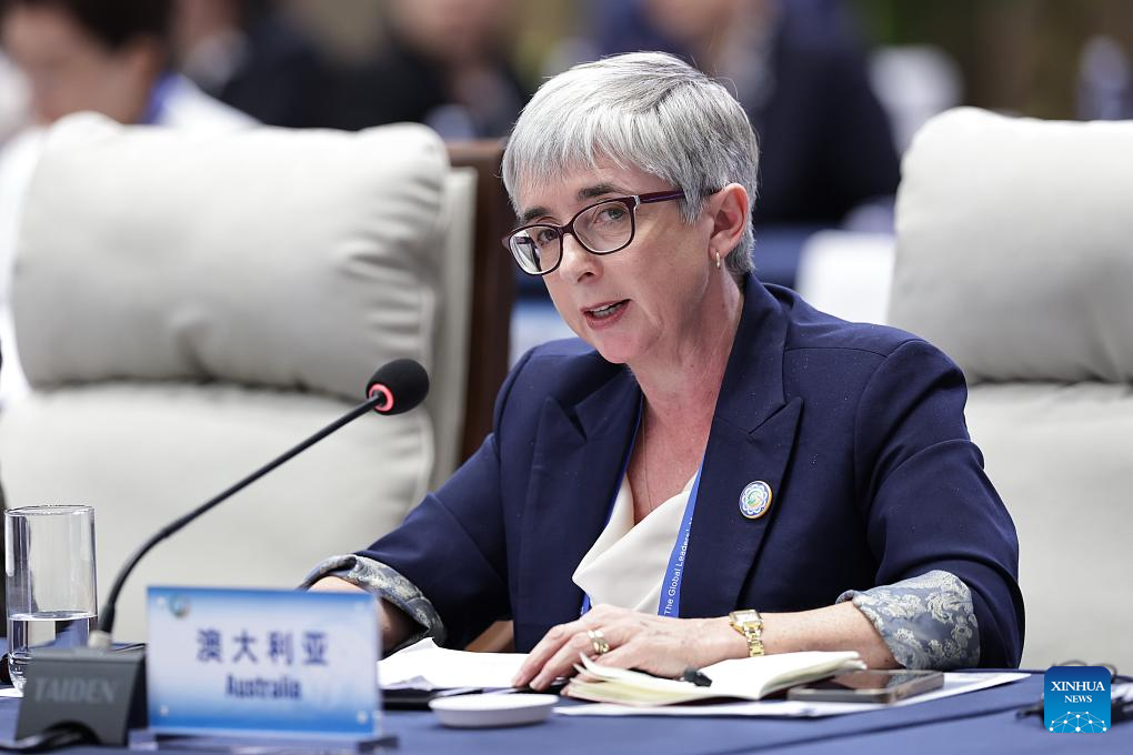 A representative from Australia attends the plenary meeting of the Global Leaders' Meeting on Women in Beijing, capital of China, Oct. 13, 2025. (Xinhua/Zhang Yuwei)