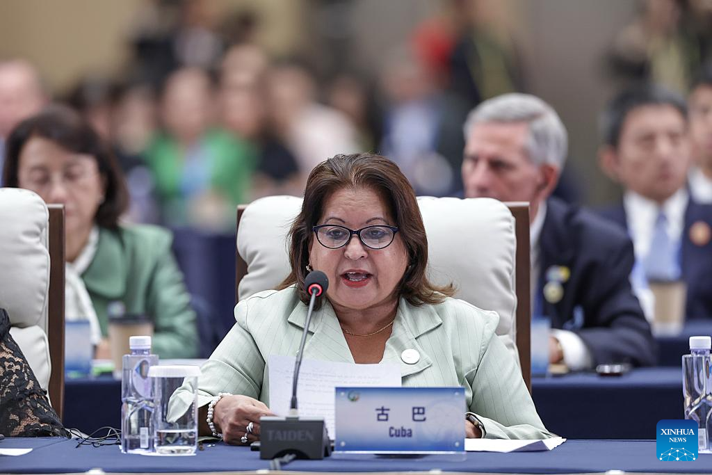 A representative from Cuba attends the plenary meeting of the Global Leaders' Meeting on Women in Beijing, capital of China, Oct. 13, 2025. (Xinhua/Zhang Yuwei)