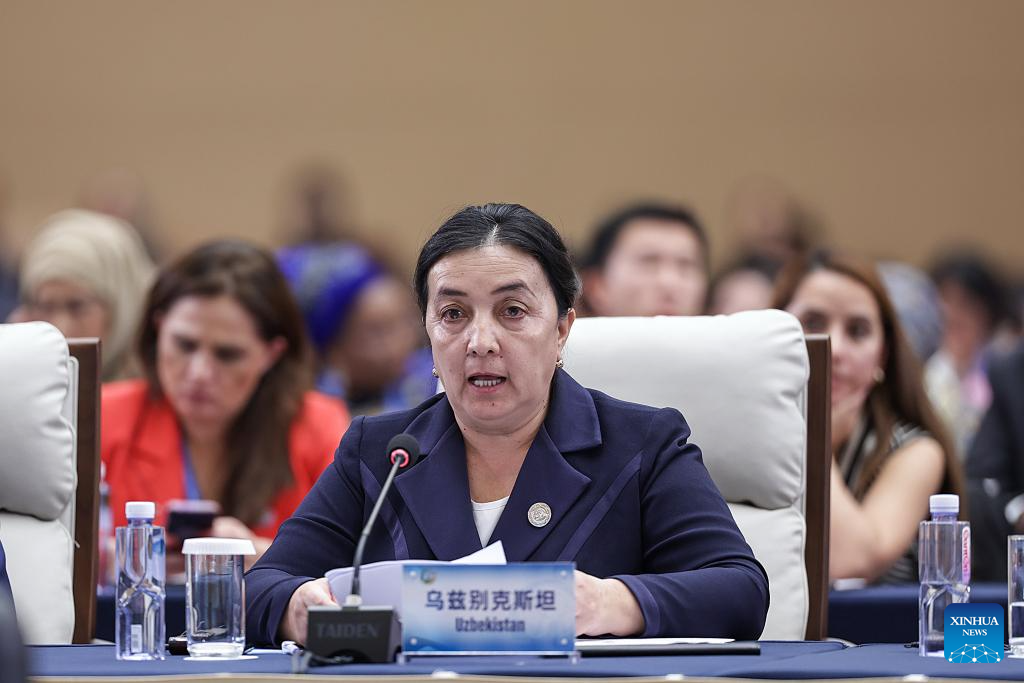 A representative from Uzbekistan attends the plenary meeting of the Global Leaders' Meeting on Women in Beijing, capital of China, Oct. 13, 2025. (Xinhua/Zhang Yuwei)
