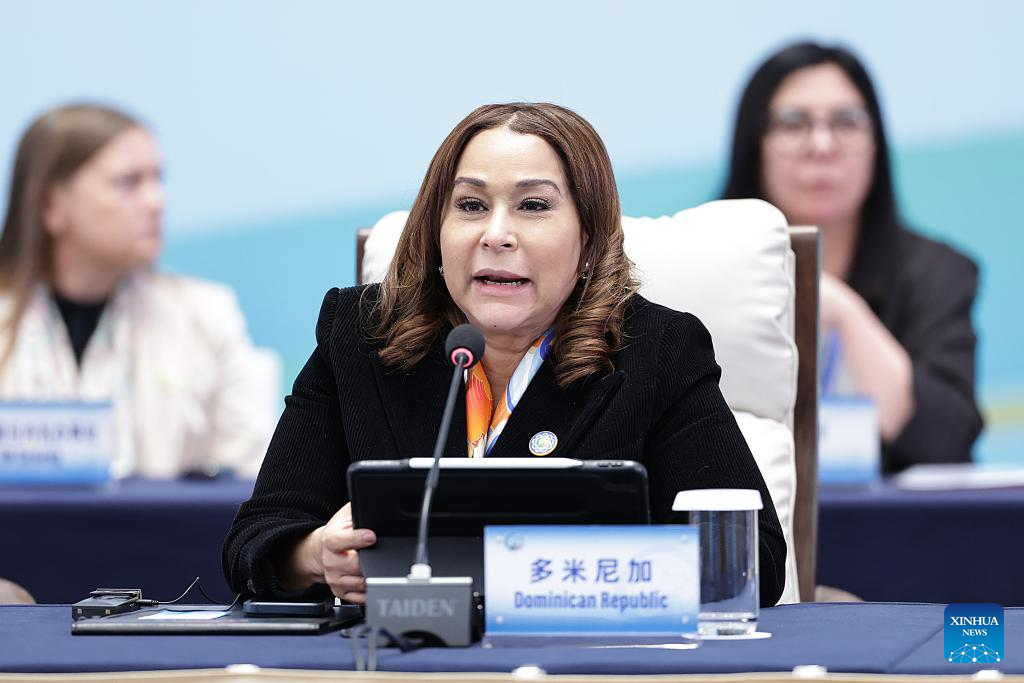 A representative from the Dominican Republic attends the plenary meeting of the Global Leaders' Meeting on Women in Beijing, capital of China, Oct. 13, 2025. (Xinhua/Zhang Yuwei)