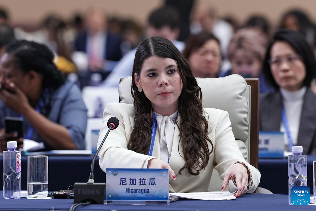 A representative from Nicaragua attends the plenary meeting of the Global Leaders' Meeting on Women in Beijing, capital of China, Oct. 13, 2025. (Xinhua/Zhang Yuwei)