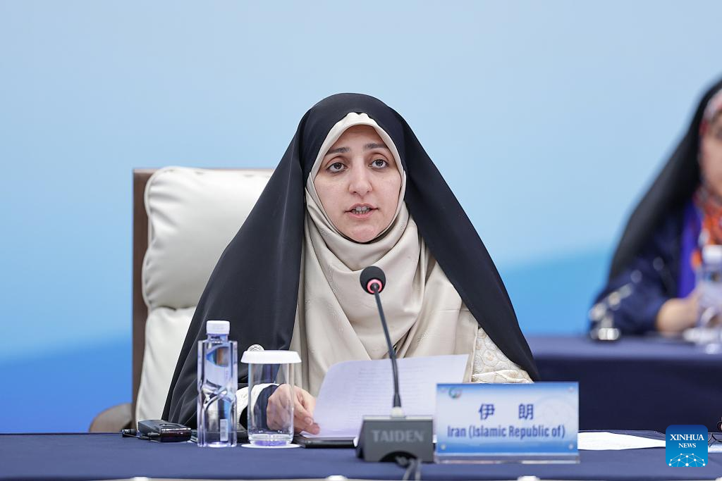 A representative from Iran attends the plenary meeting of the Global Leaders' Meeting on Women in Beijing, capital of China, Oct. 13, 2025. (Xinhua/Zhang Yuwei)